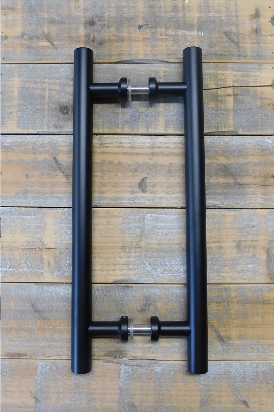 Schöne und elegante Türgriffe aus rostfreiem Stahl und mit mattschwarzer Pulverbeschichtung.