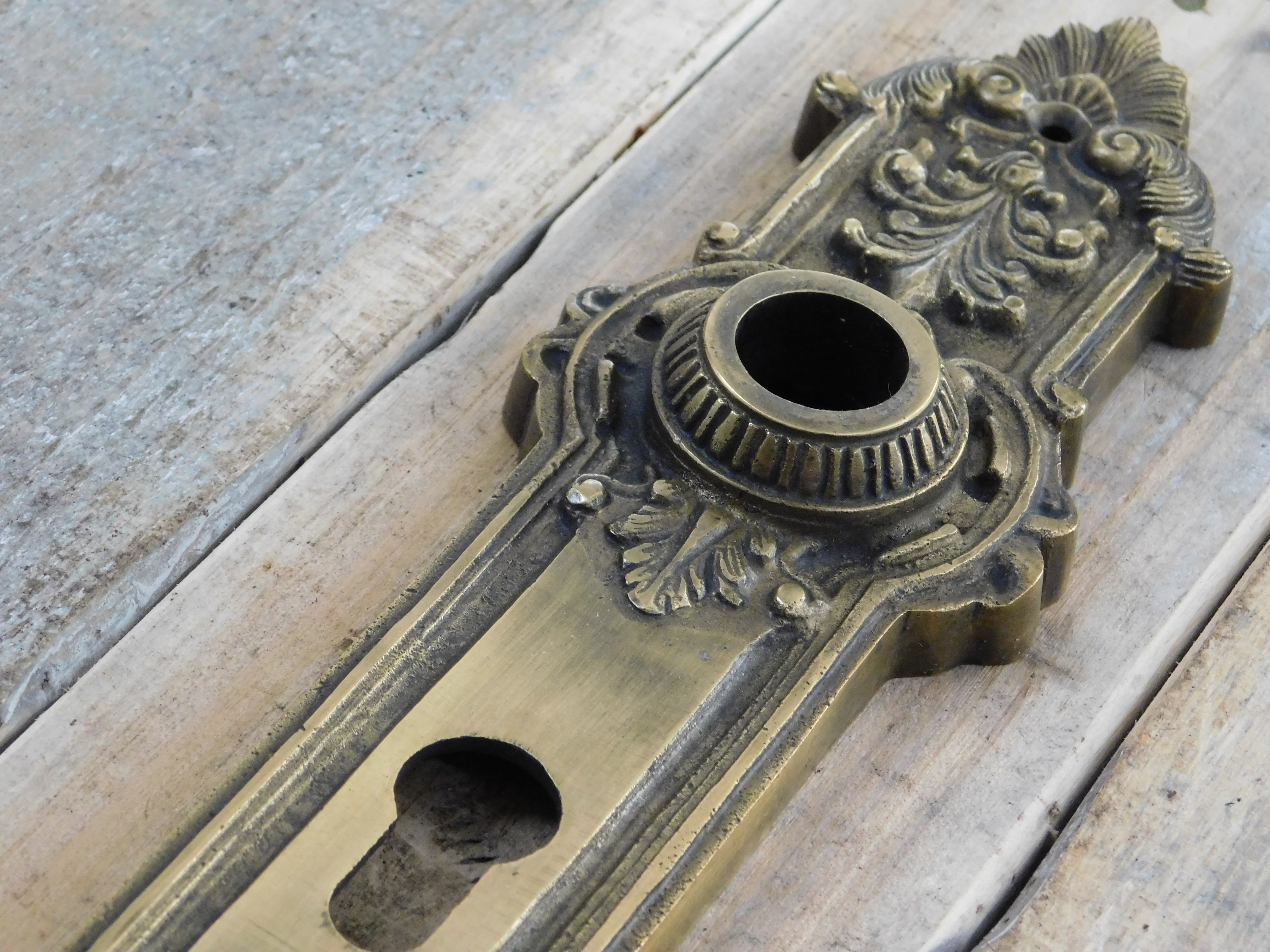 Lange deurplaat cilinder slot geschikt, zwaar antiek messing, echt heel fraai!!