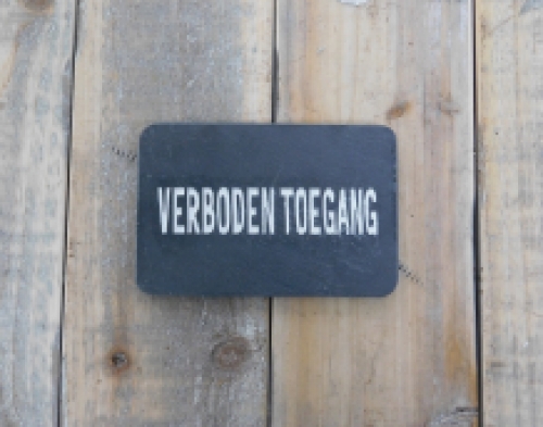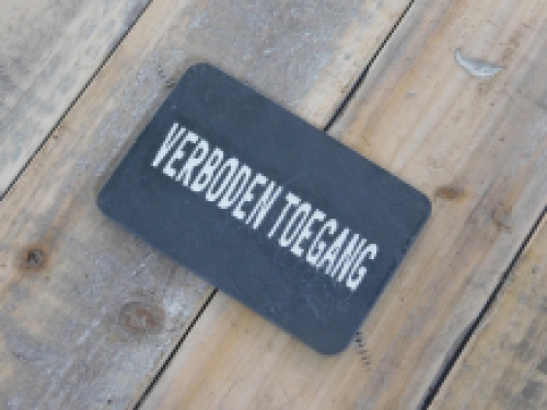 Dit infobord met de tekst ''verboden toegang'' is gemaakt van leisteen.