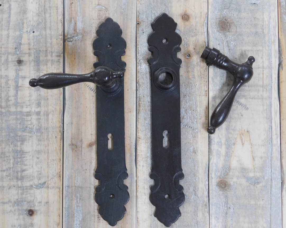 Klassieke set deurbeslag, geschikt voor kamerdeuren (BB), volledig van ijzer. (donkerbruin)
