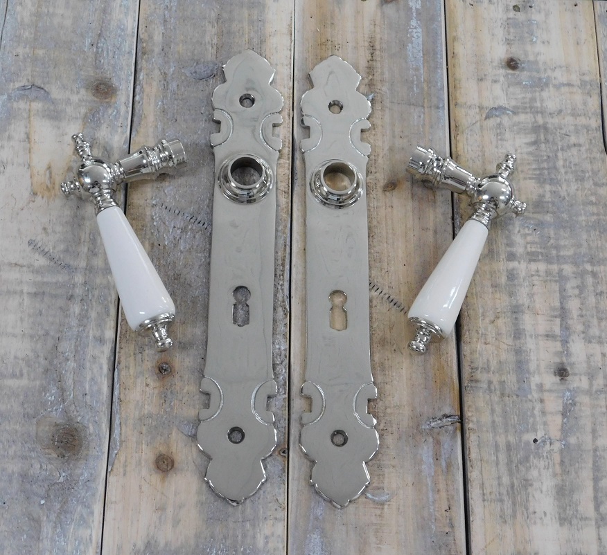 Set deurbeslag voor binnendeuren - nikkel gepolijst - antieke deurgrepen porselein wit