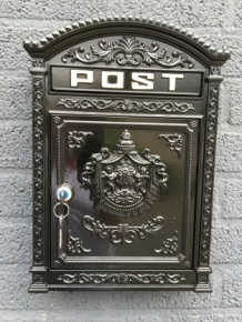 Dit filigraan metalen wand brievenbus - aluminium is niet alleen praktisch en mooi, maar ook roest-vrij en voorzien van weerbestendige verf. De antiek-zwart kleur past heel goed bij een lichtere muur.