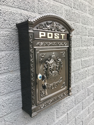 In de idyllische straatjes met kleine, smalle huizen in de districten van Londen, daar herinnert deze als antiek ogende mailbox aan. Mooie en charmante nostalgische mailbox in de Engels stijl - bijzonder aantrekkelijk om als brievenbus aan huis te hebben hangen.
