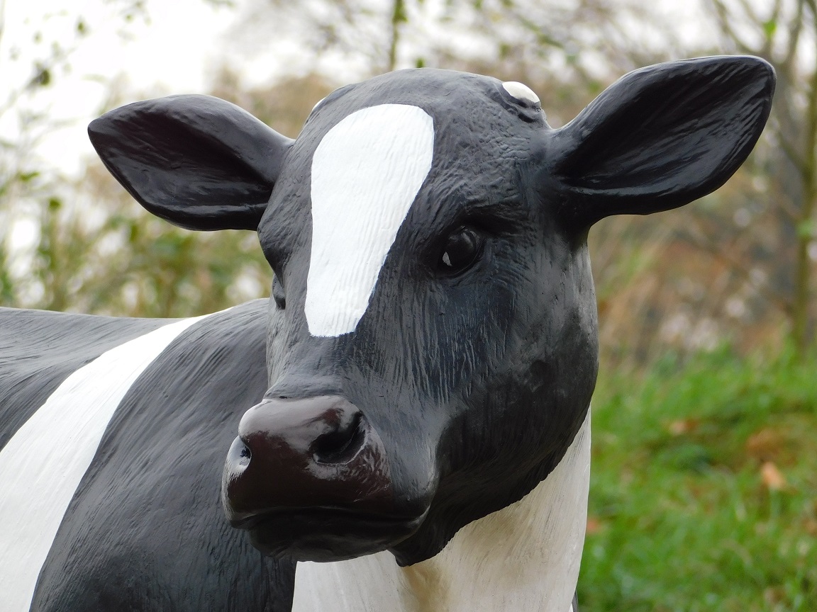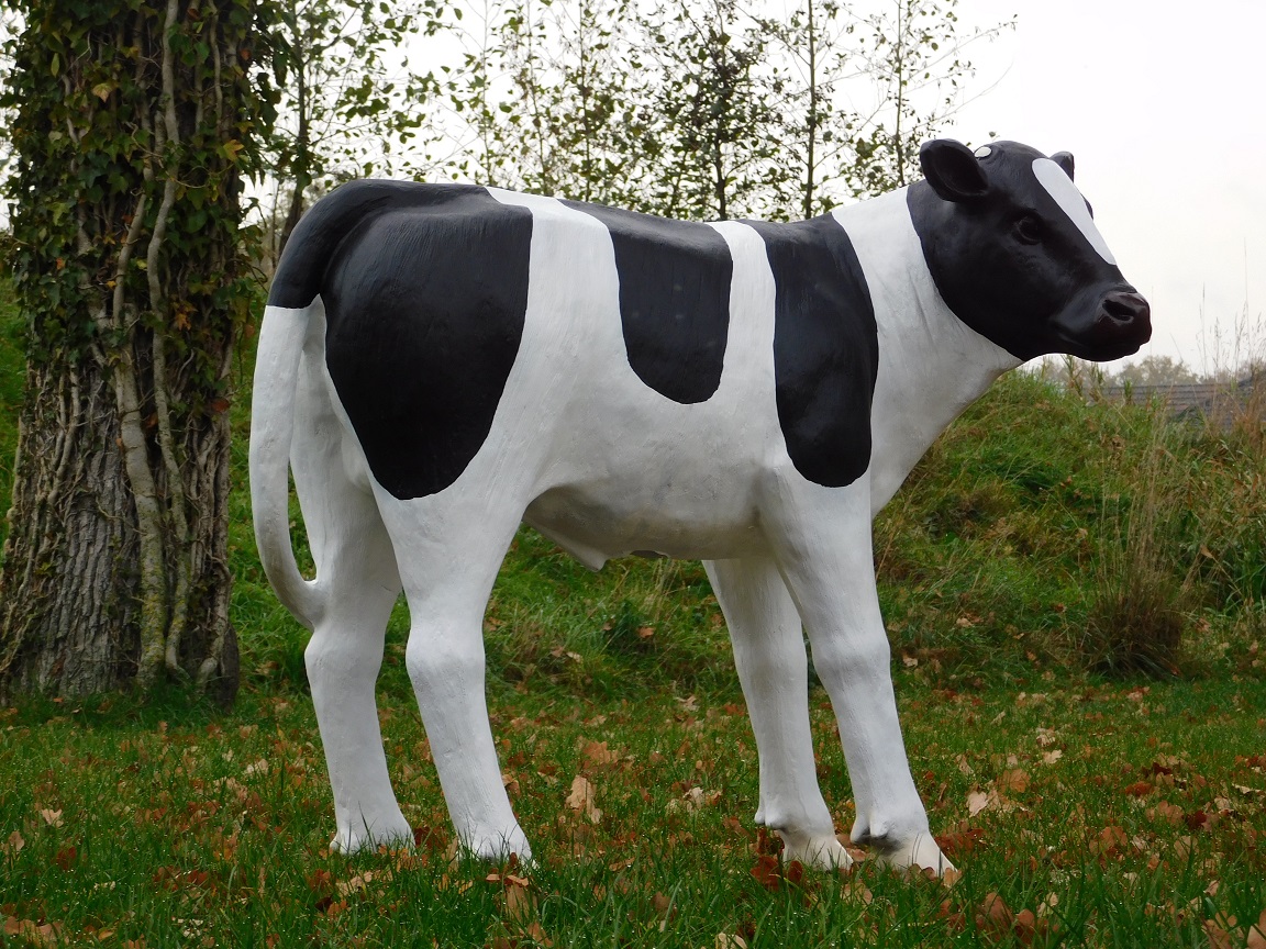 Let your space radiate power and character with this beautiful statue of a bull in black and white, featuring the recognisable pattern of a cow.
