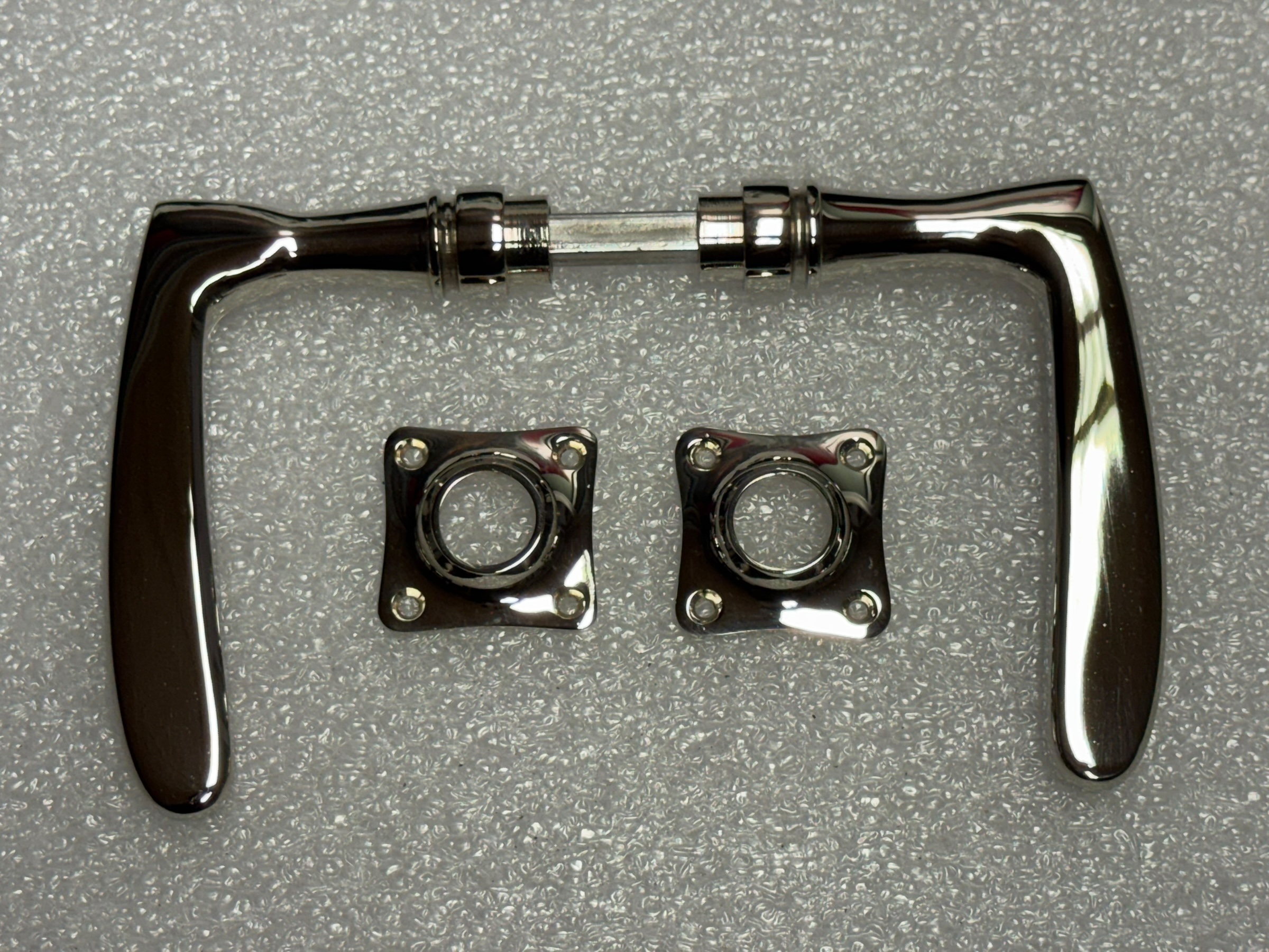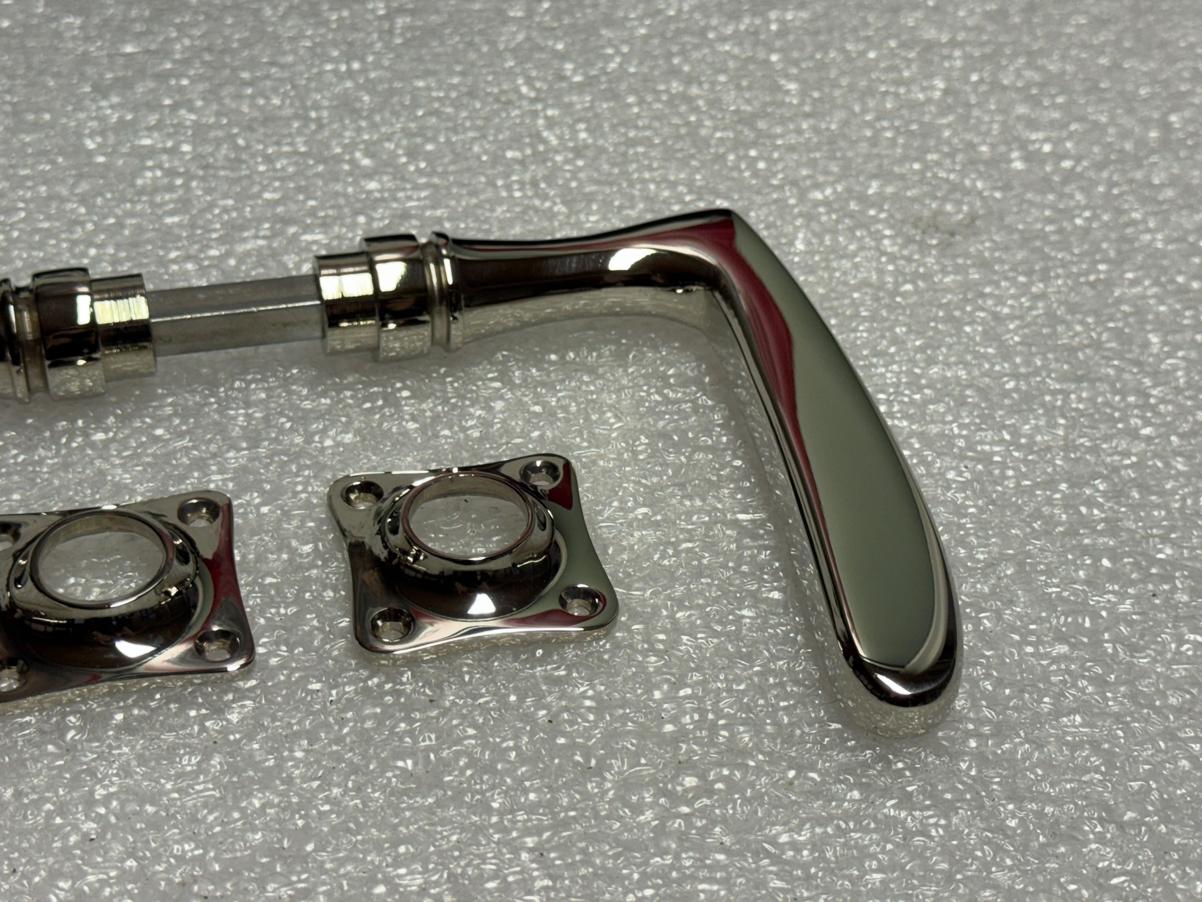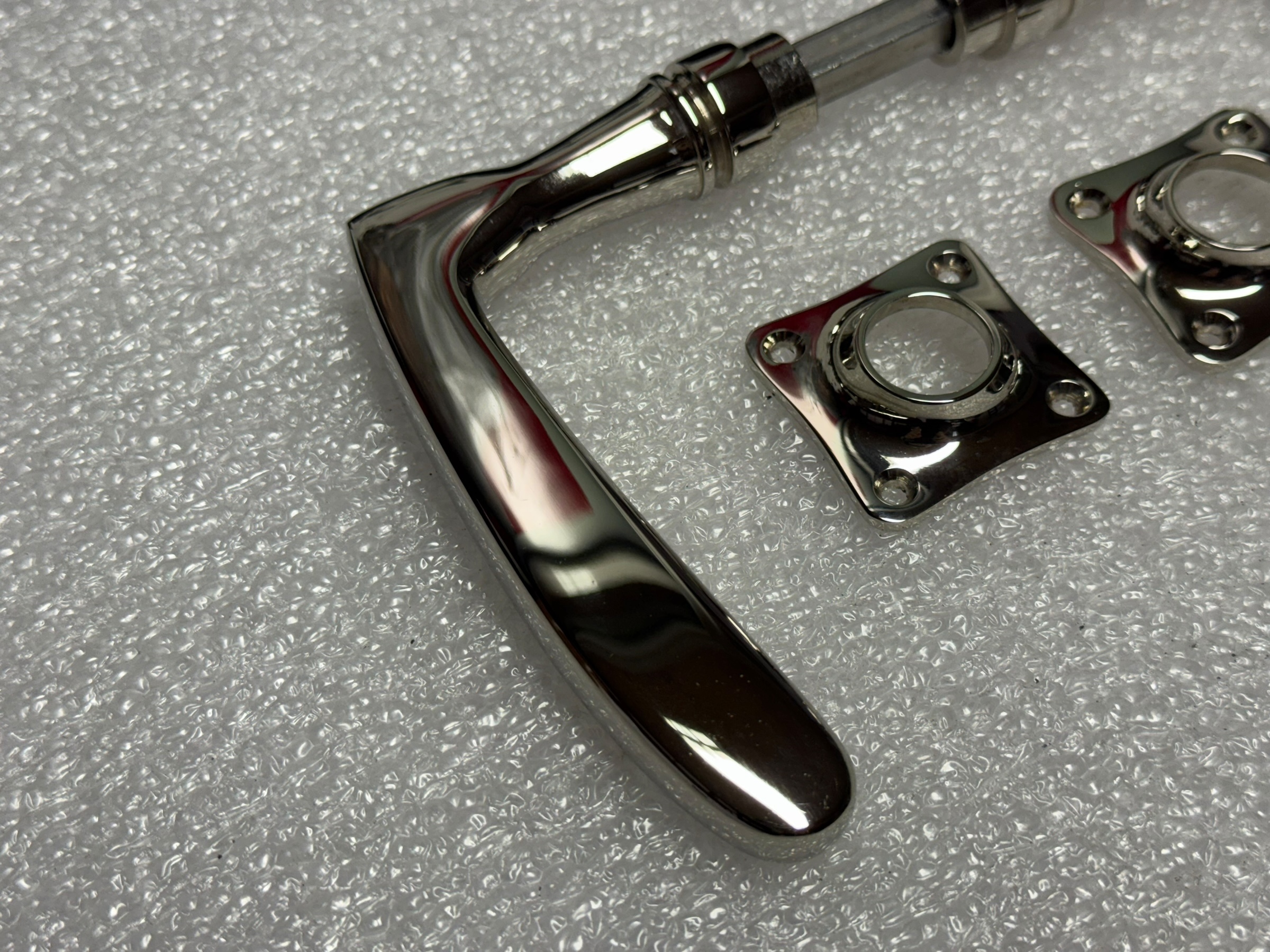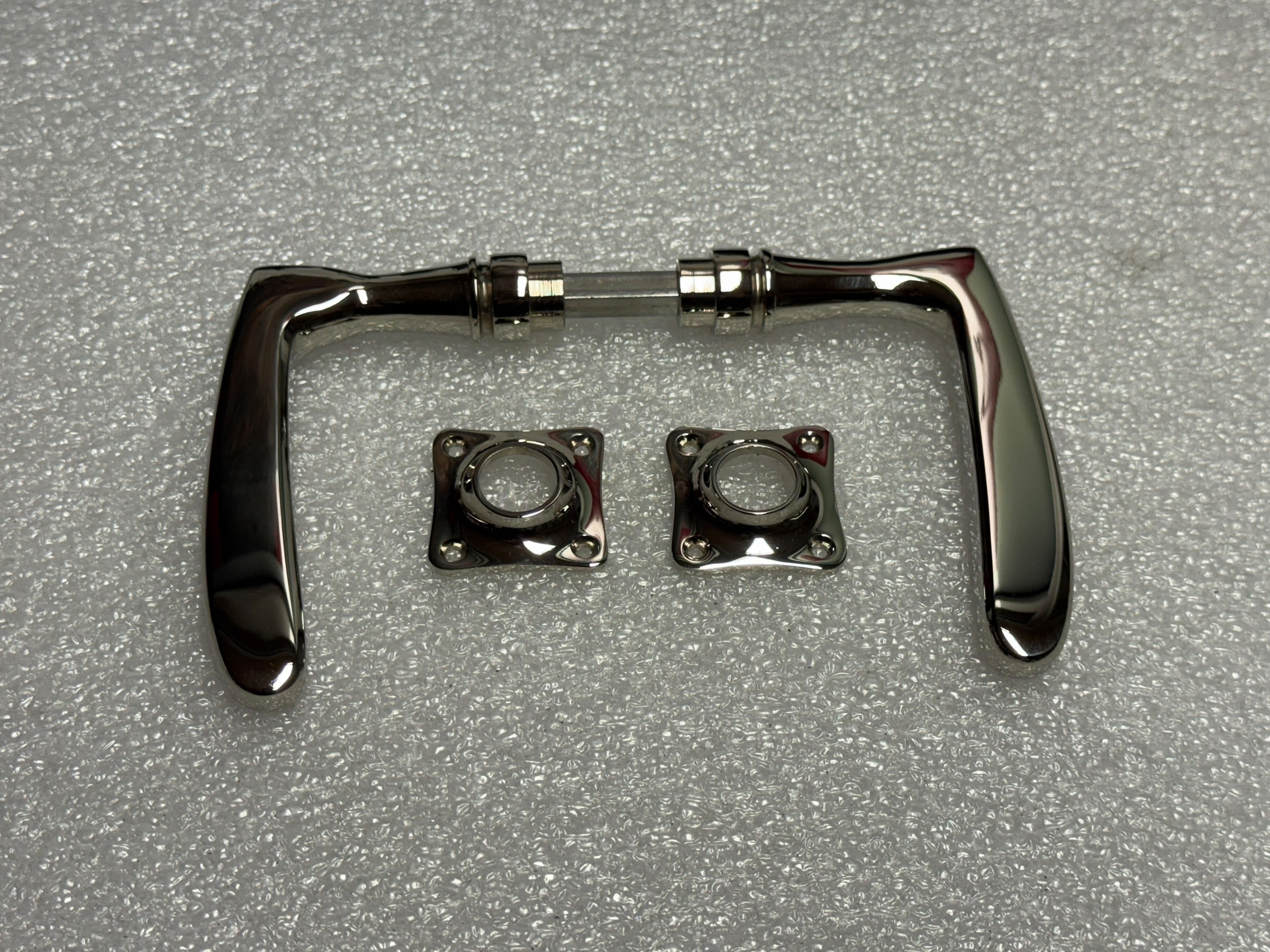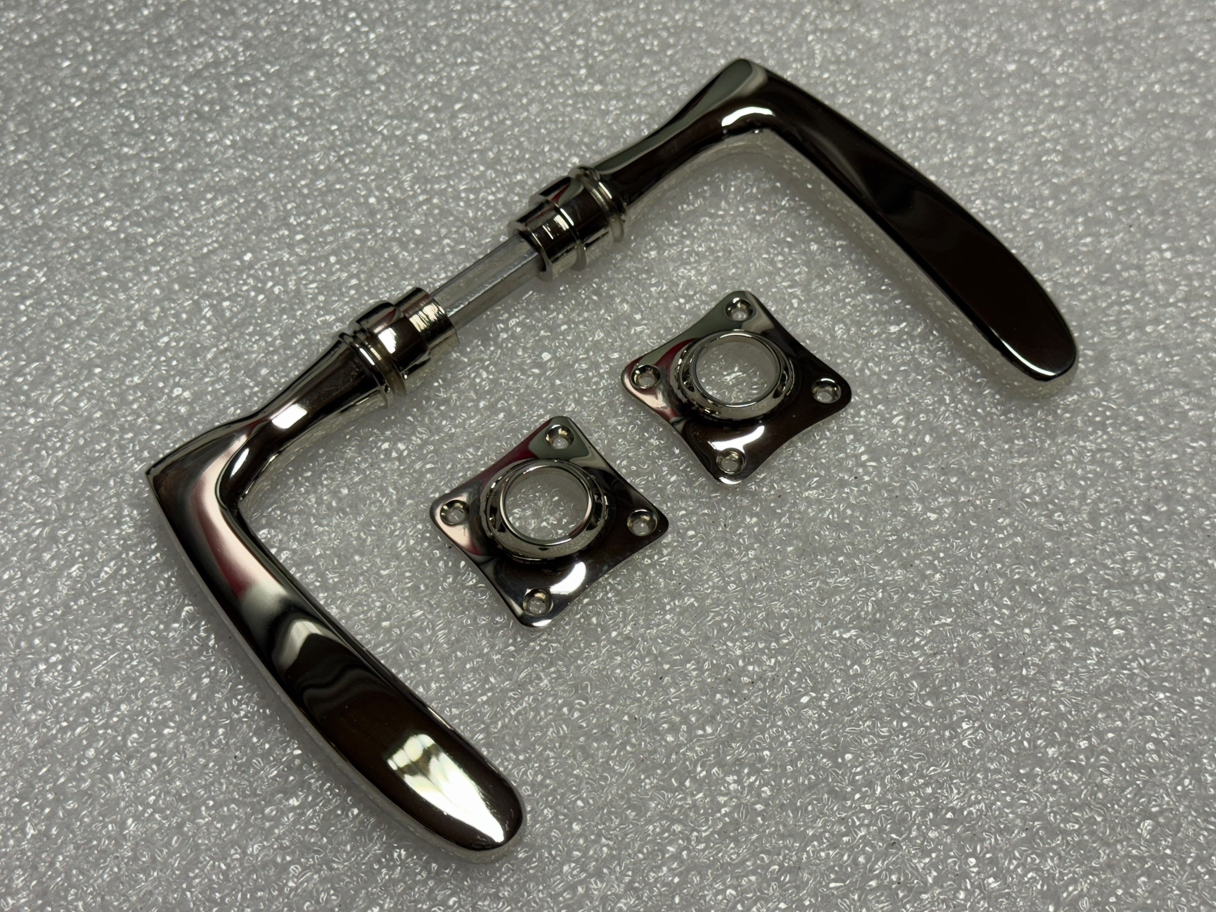 Leveringsomvang: 1x complete deurset, bestaande uit 2 deurklinken en bijpassende rozetten, chroom glanzend.