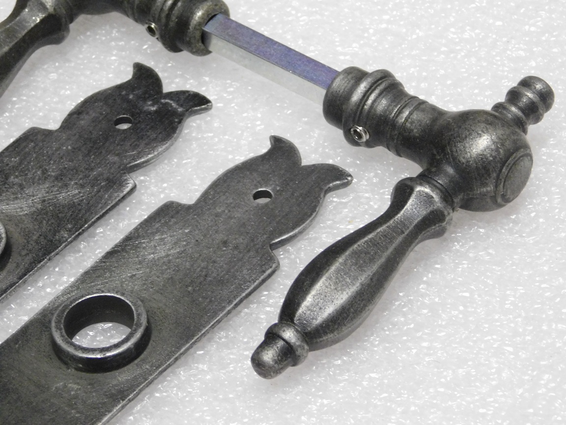 Door Hardware Set - Kensington Handles + Baron BB 72 Door Plates - Galvanised Cast Iron