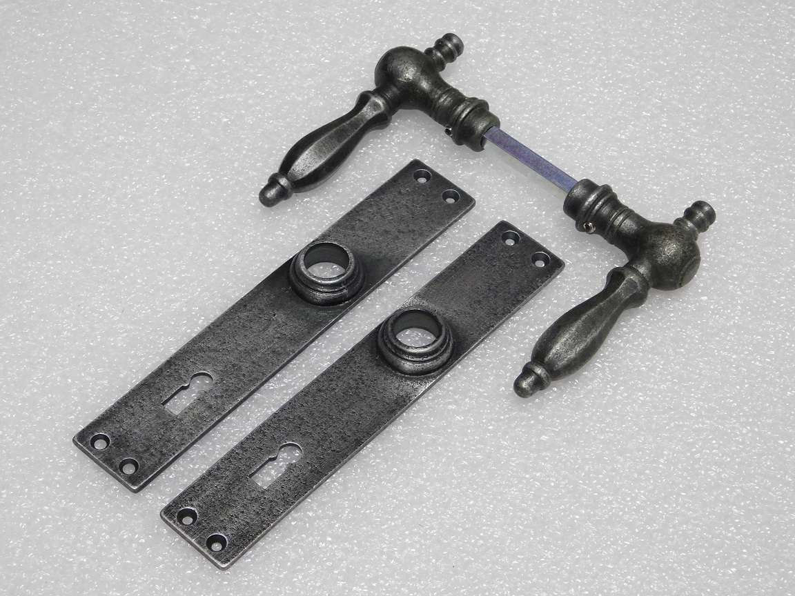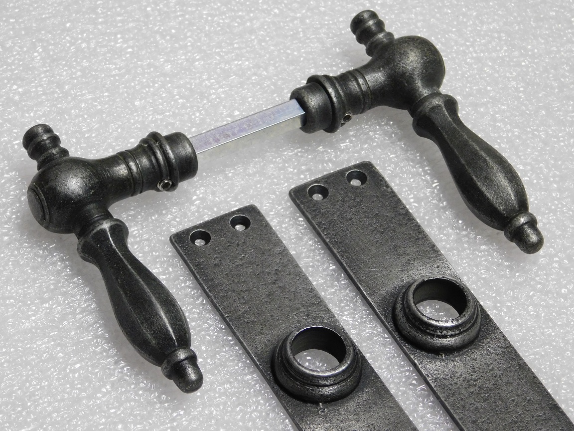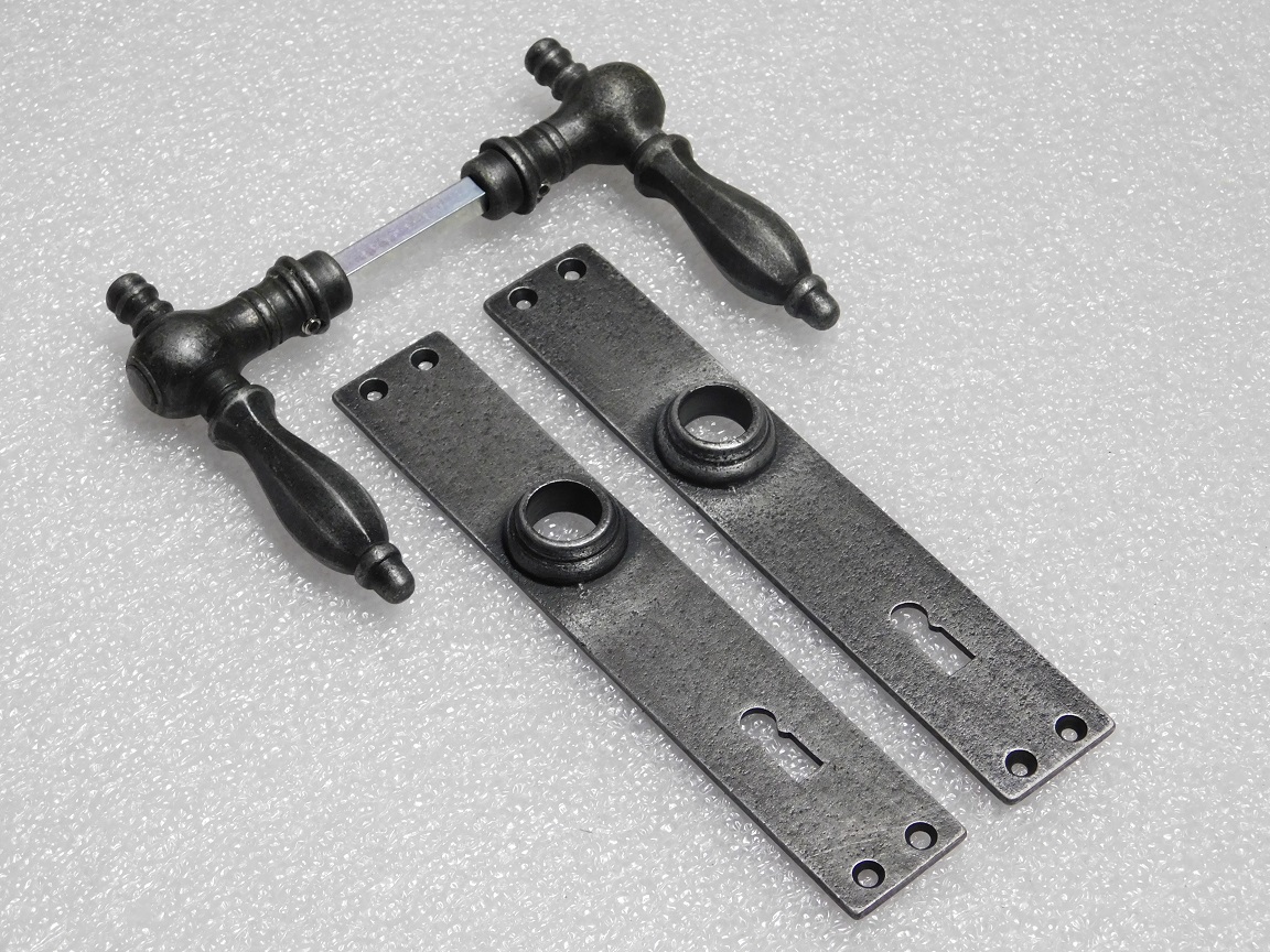 Included in delivery: 1 set, 2 handles + 2 door plates and spindle, cast iron