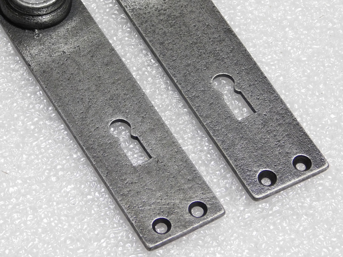 Door Hardware Set - Kensington Handles + Plain Door Plates - Galvanized Cast Iron