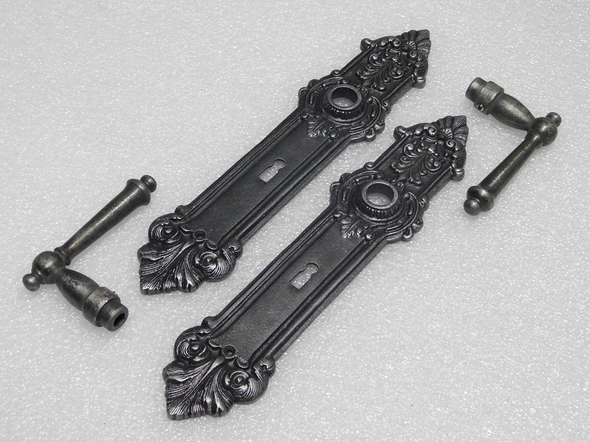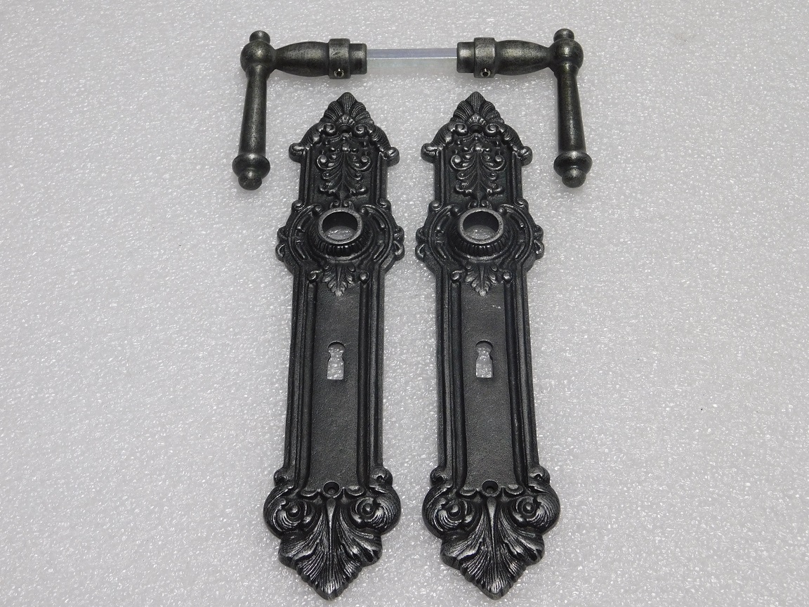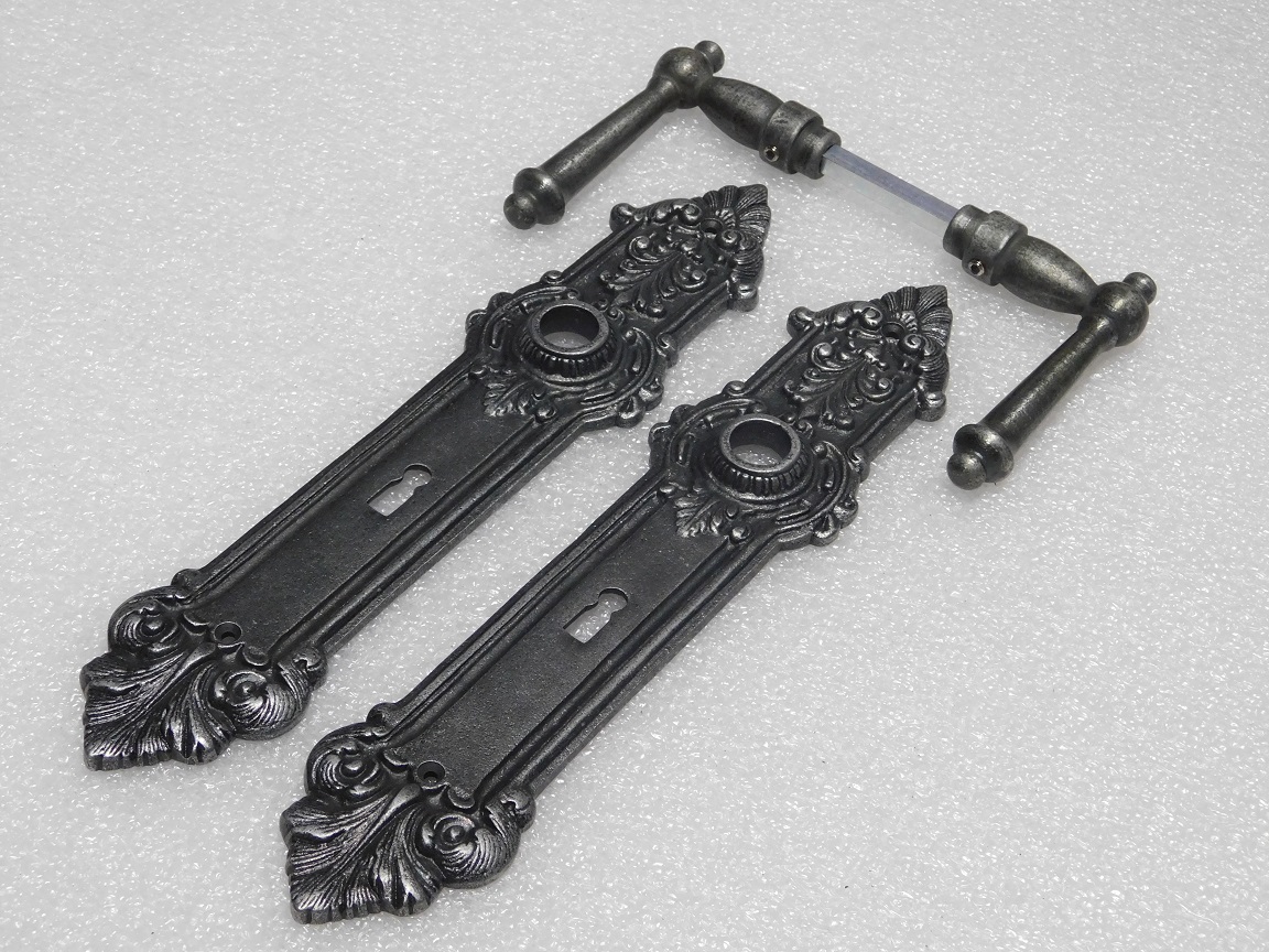 Door Hardware Set - York Handles + Heritage BB 72 Door Plates - Cast Iron, Galvanised
