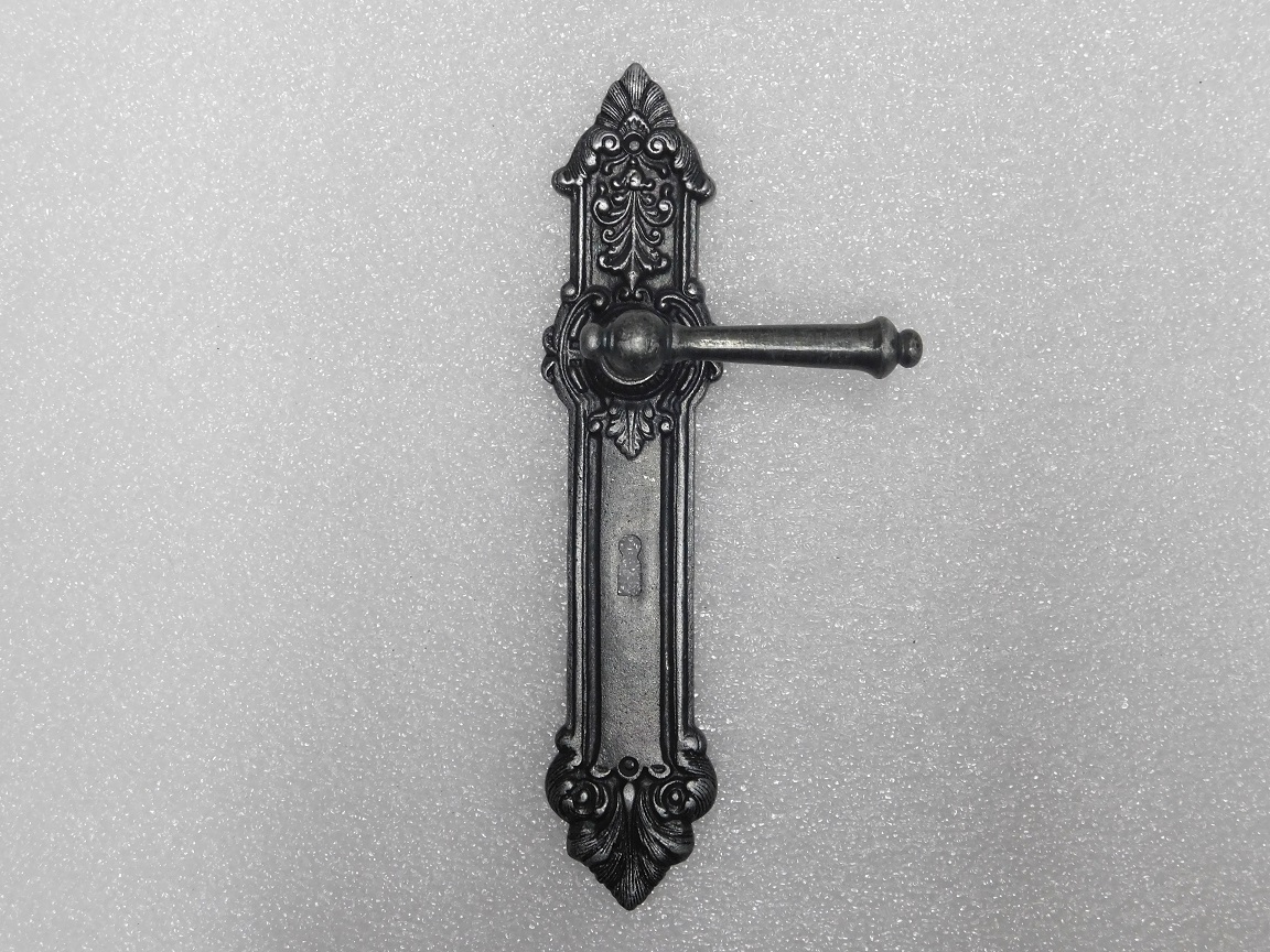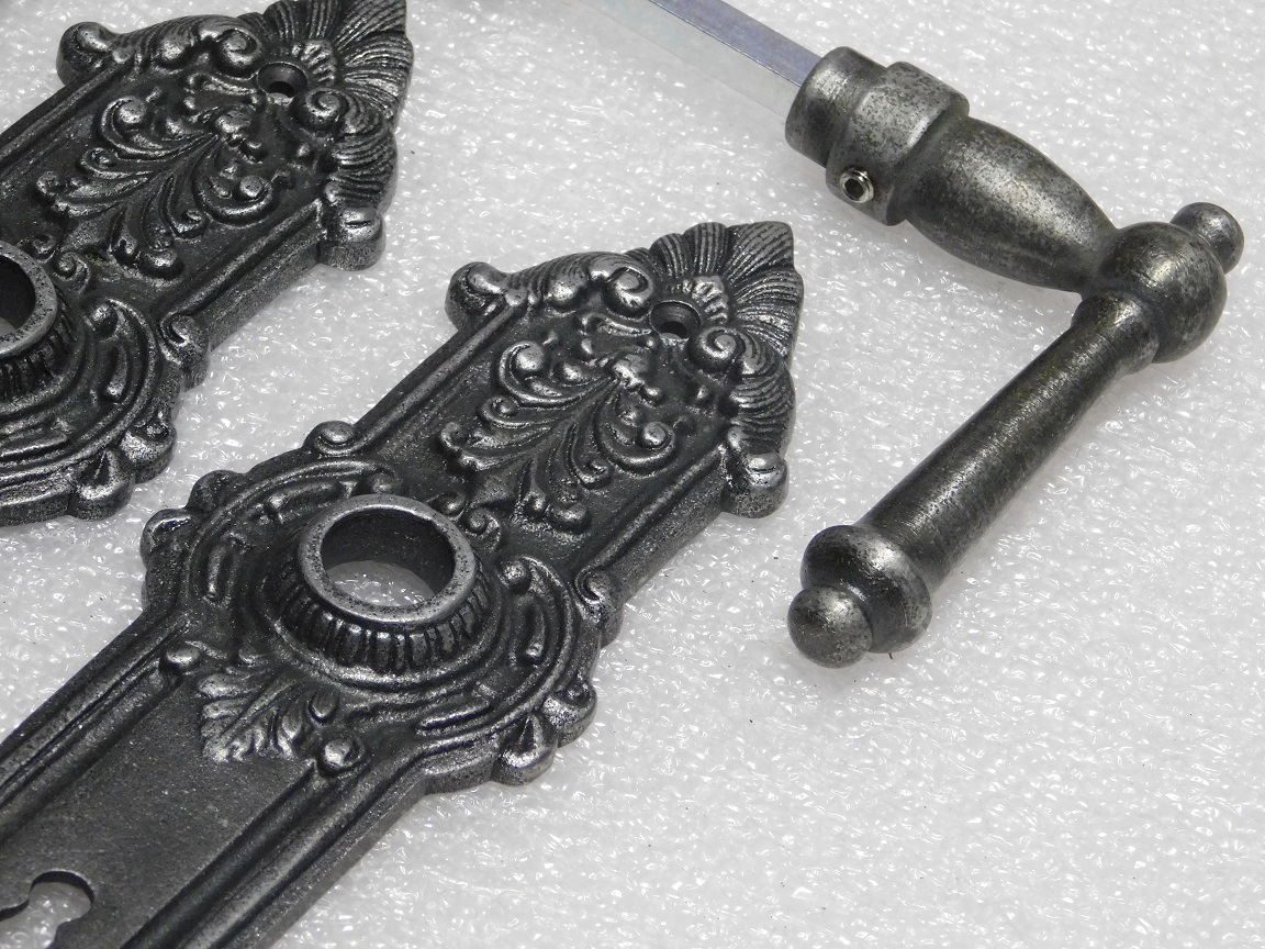 This complete York door hardware set combines robust York door handles with characterful Heritage door plates made from galvanised cast iron.