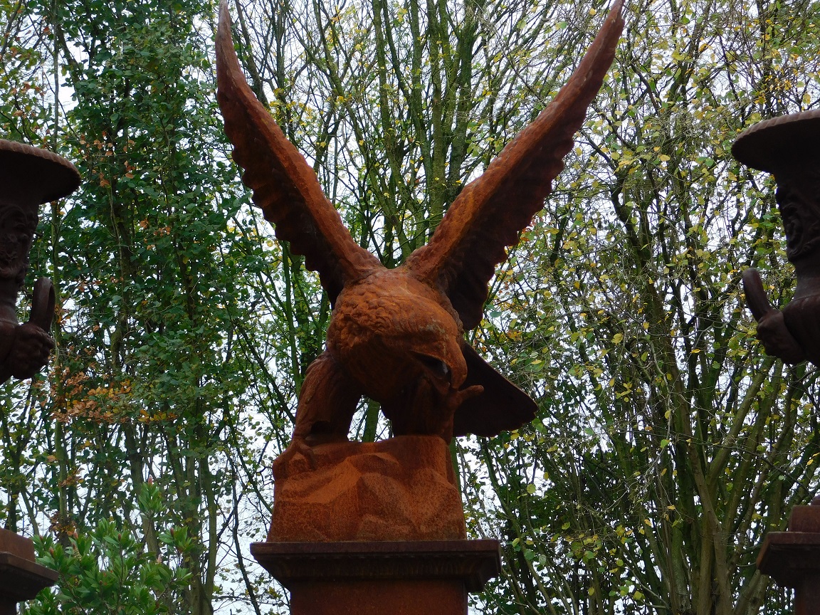 Mit einer Höhe von ca. 113 cm und einer Flügelspannweite von 86 cm ist dies eine wahrhaft kolossale und majestätische Gartenfigur.