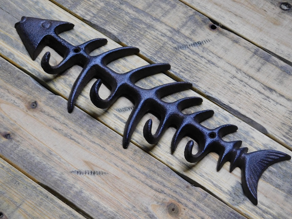 Fish Coat Rack - Cast Iron - Wall Hooks - Dark Brown