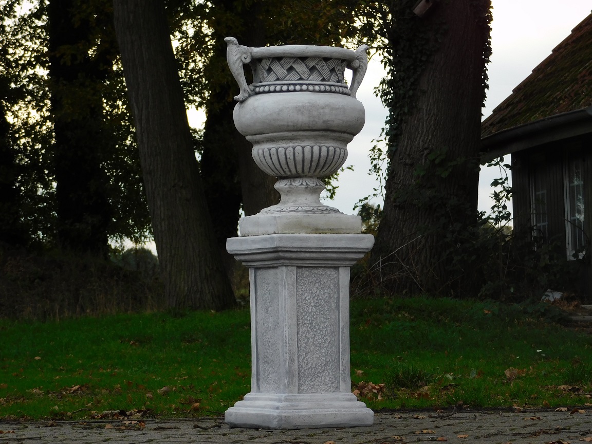 Let your garden shine with this elegant stone flower pot on a pedestal — a real eye-catcher that adds atmosphere and style to any outdoor space.
