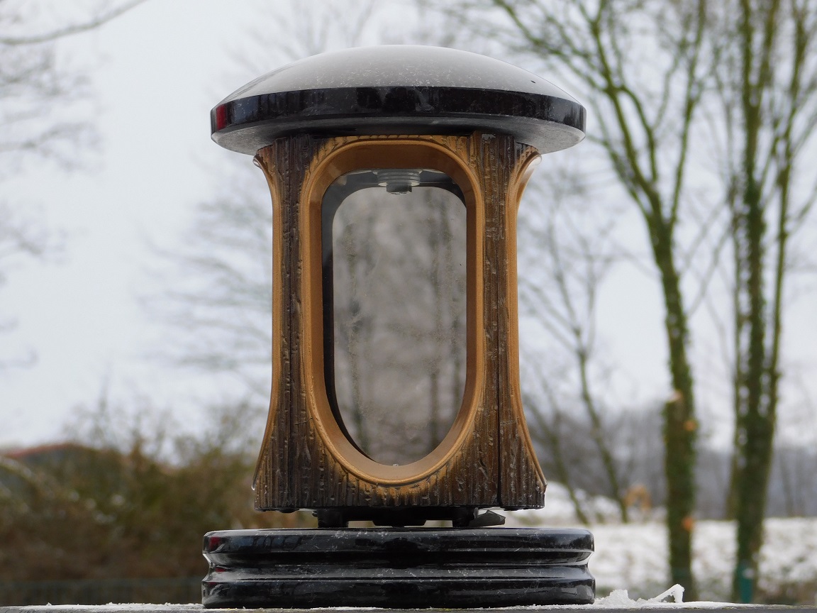Thanks to the solid natural stone, this lantern stands firm, regardless of the season.