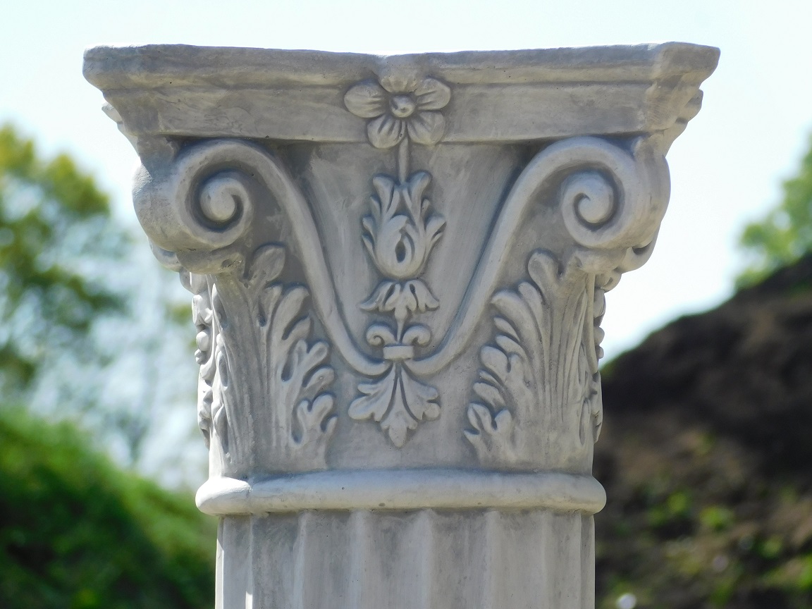 Das raffinierte Kapitell mit kunstvollen Ornamenten und die kannelierte Säule verleihen dem Ganzen ein exklusives, fast römisches Flair.