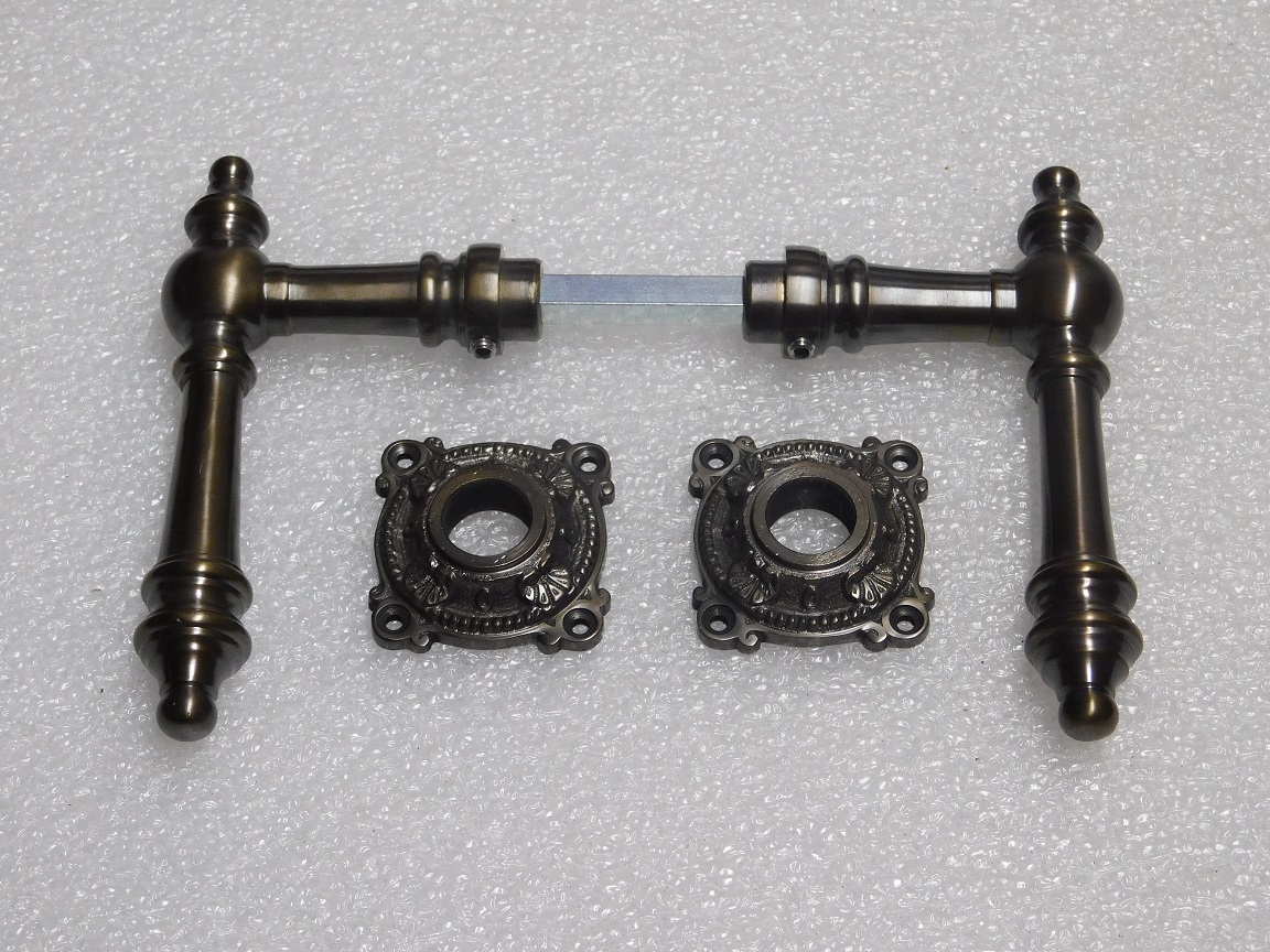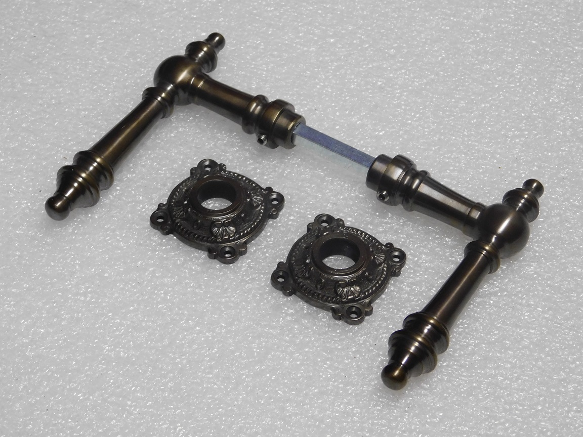 Türgriffset Montreux mit Rosetten – Dunkel patiniertes Messing