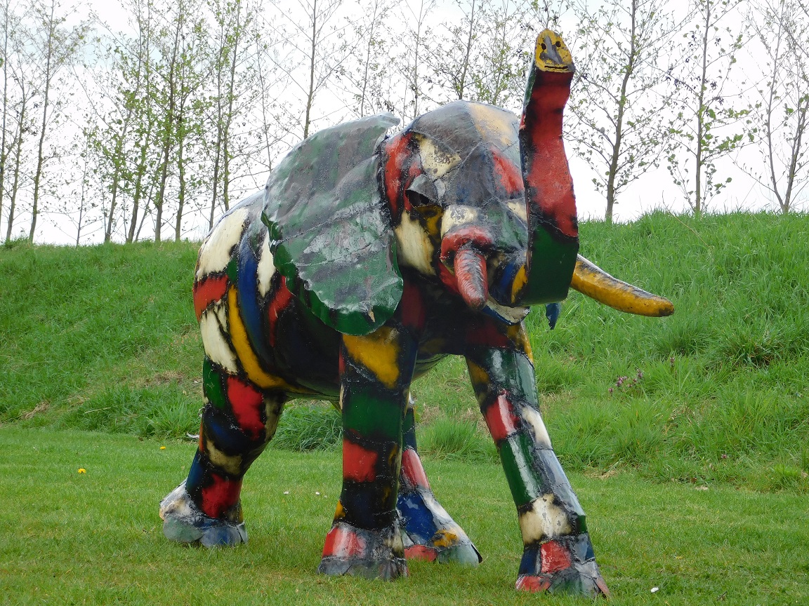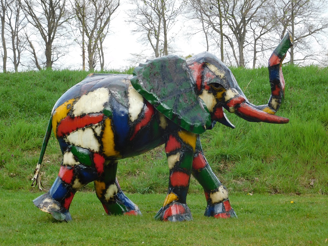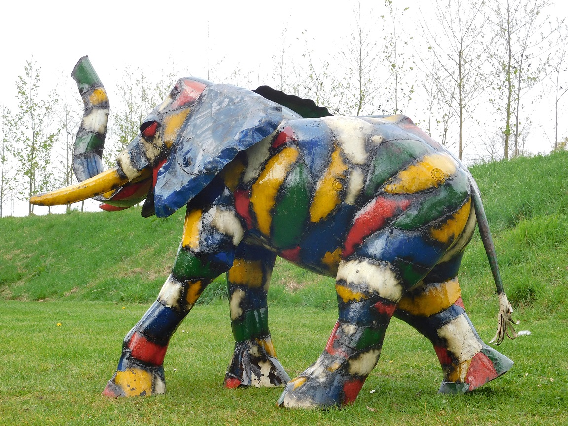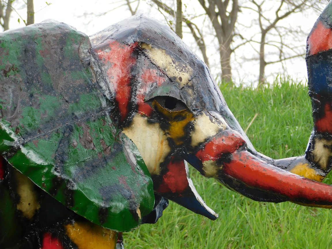 Deze indrukwekkende handgemaakte olifant is een waar kunstobject dat direct de aandacht trekt.