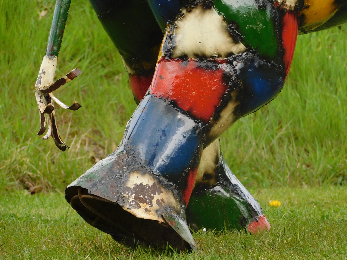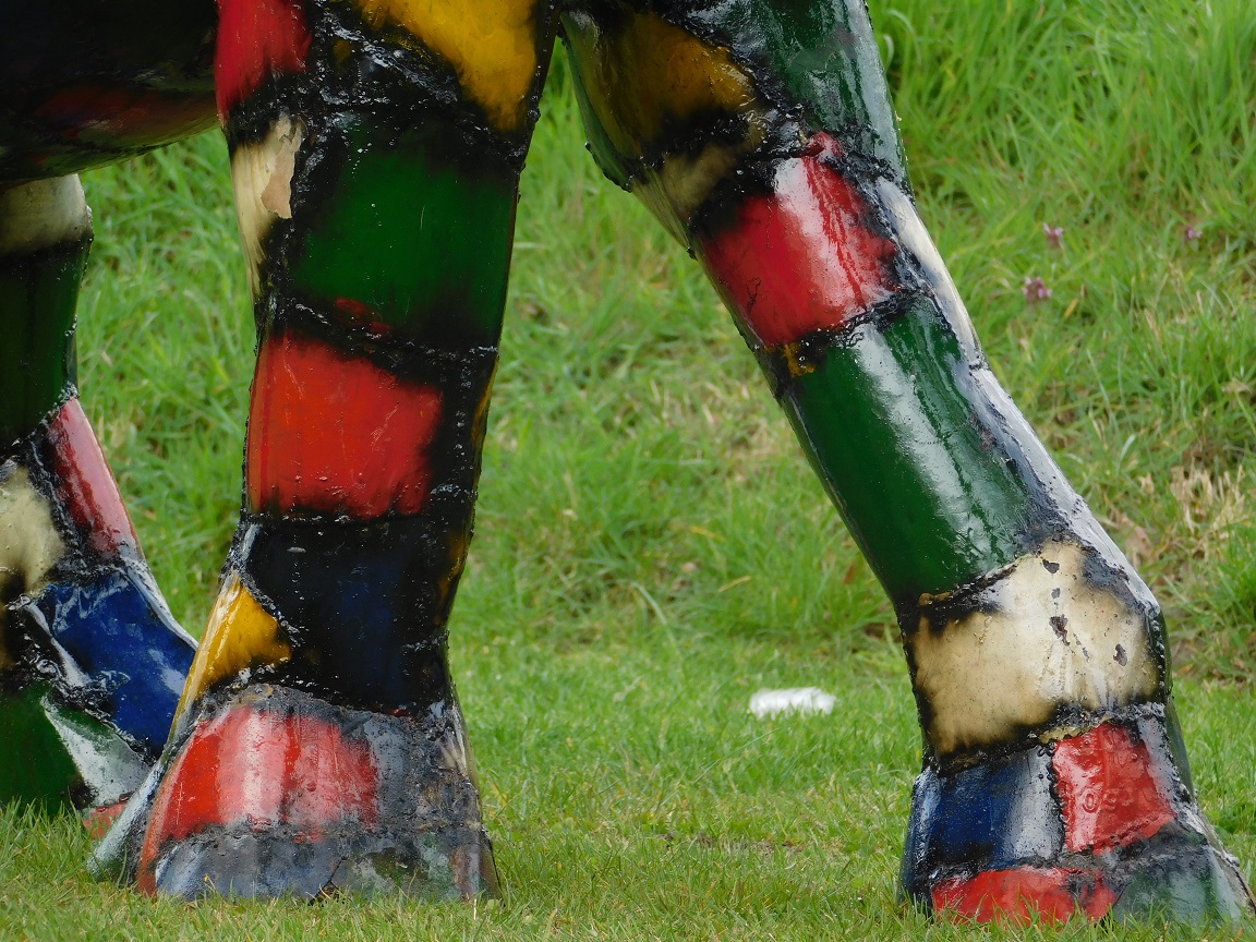 De levendige kleuren, robuuste vorm en artistieke afwerking geven dit beeld een krachtige en speelse uitstraling.