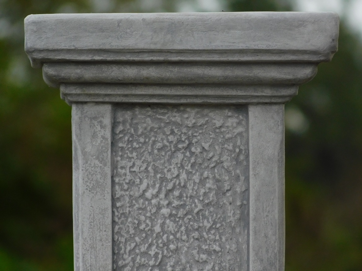 This stone pedestal is made from durable material. Perfect as a base for a statue, fountain or plant vase.