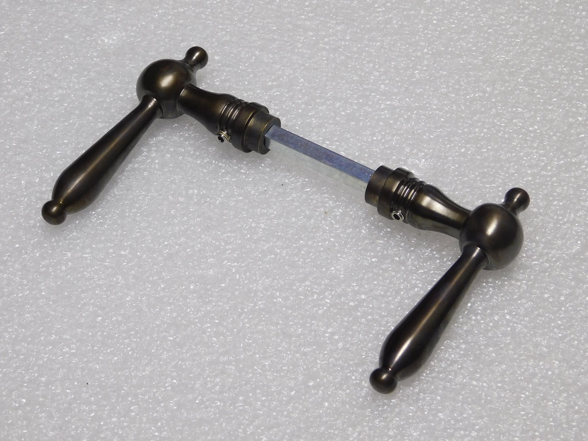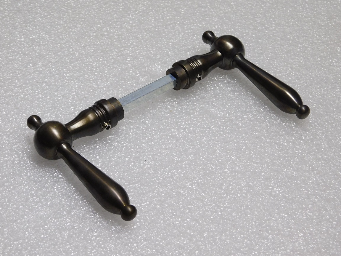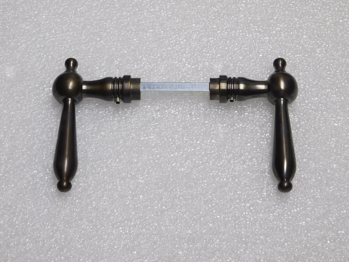 Give your door a stylish and authentic look with this beautiful Revo door handle set, crafted from dark patinated brass.