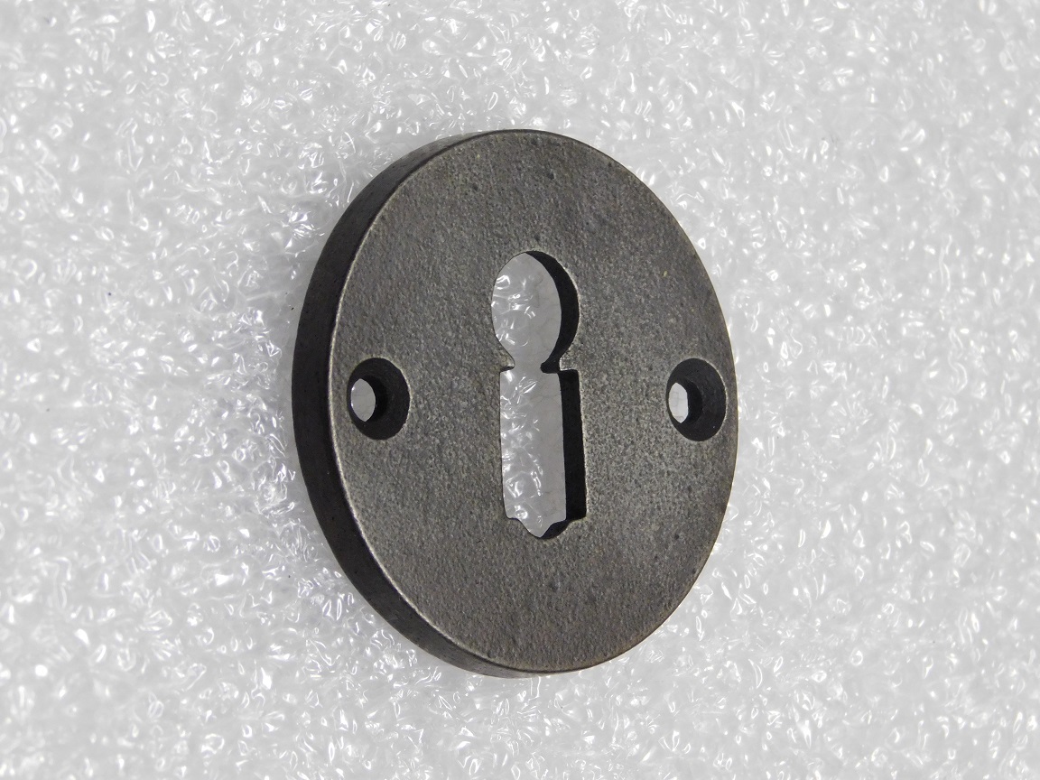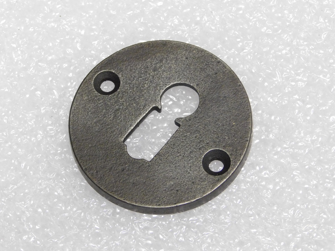 Dieses runde Türschild für BB-Schlösser ist aus robustem Gusseisen gefertigt und besticht durch seine elegante graue Oberfläche.