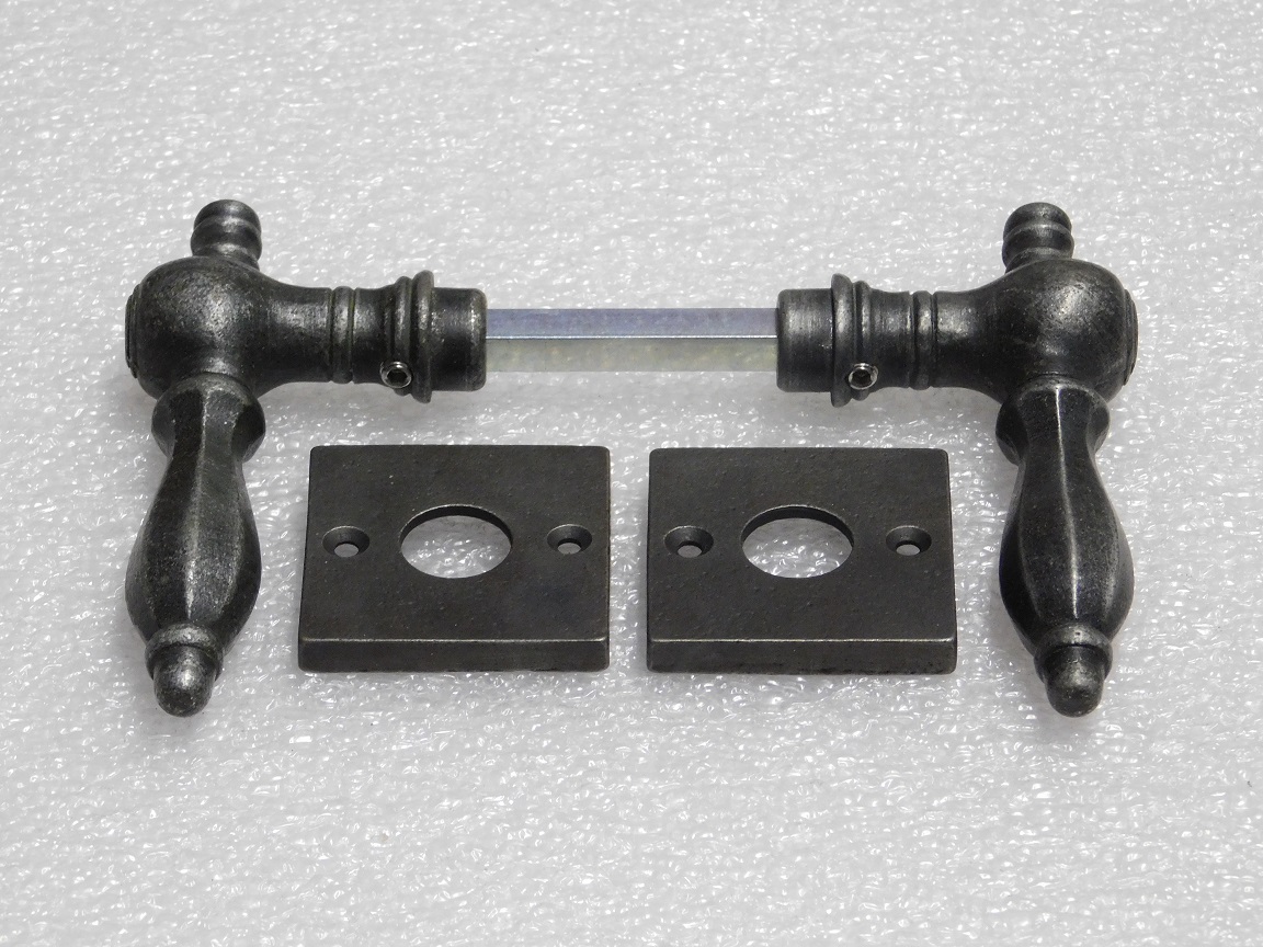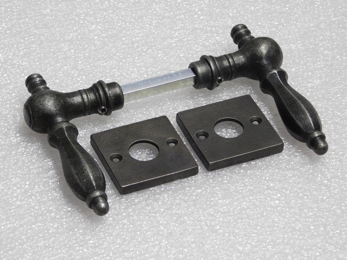 Set Türgriffe Kensington + quadratische Rosetten – verzinktes Gusseisen