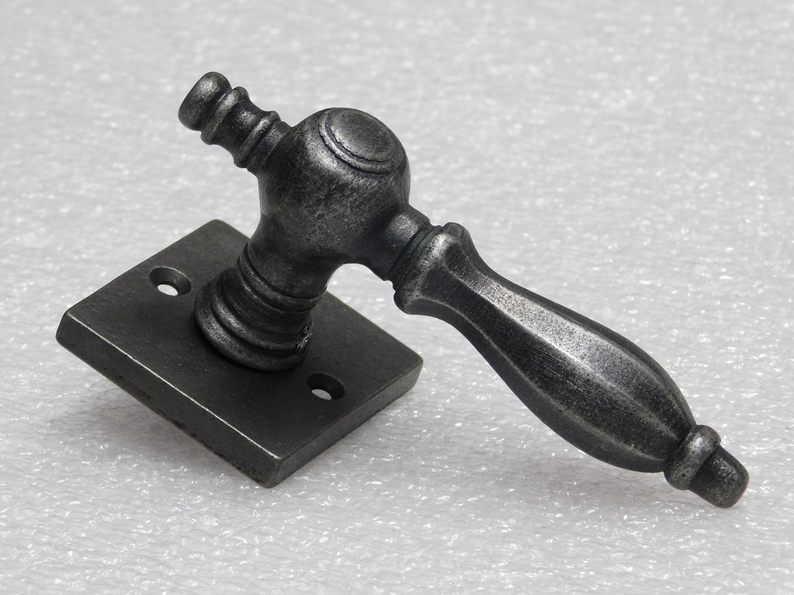 Die quadratischen Türrosetten (5 x 5 cm) verleihen dem Ganzen ein modernes und gepflegtes Finish, während das verzinkte Gusseisen für Langlebigkeit und einen charakteristischen, leicht verwitterten Look sorgt.