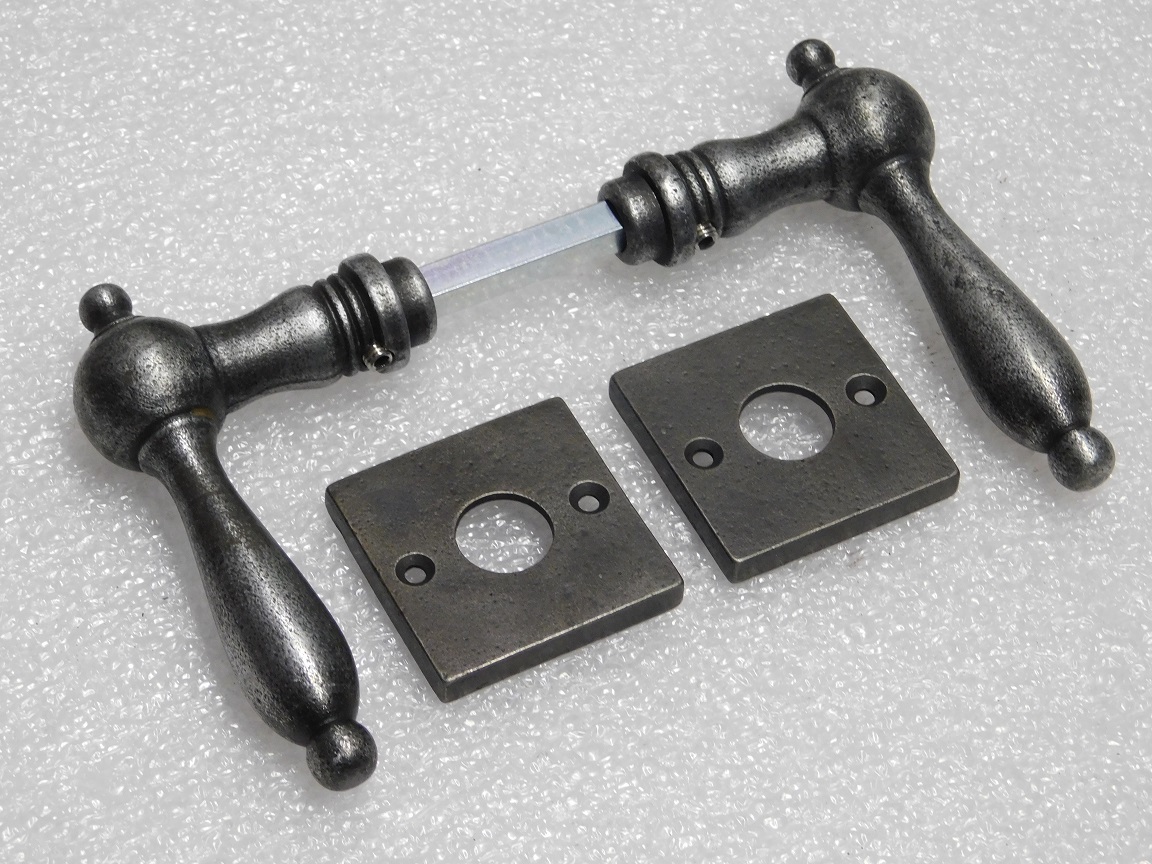 Set Klinken Cambridge + Klinkrozetten Vierkant - Gietijzer Verzinkt