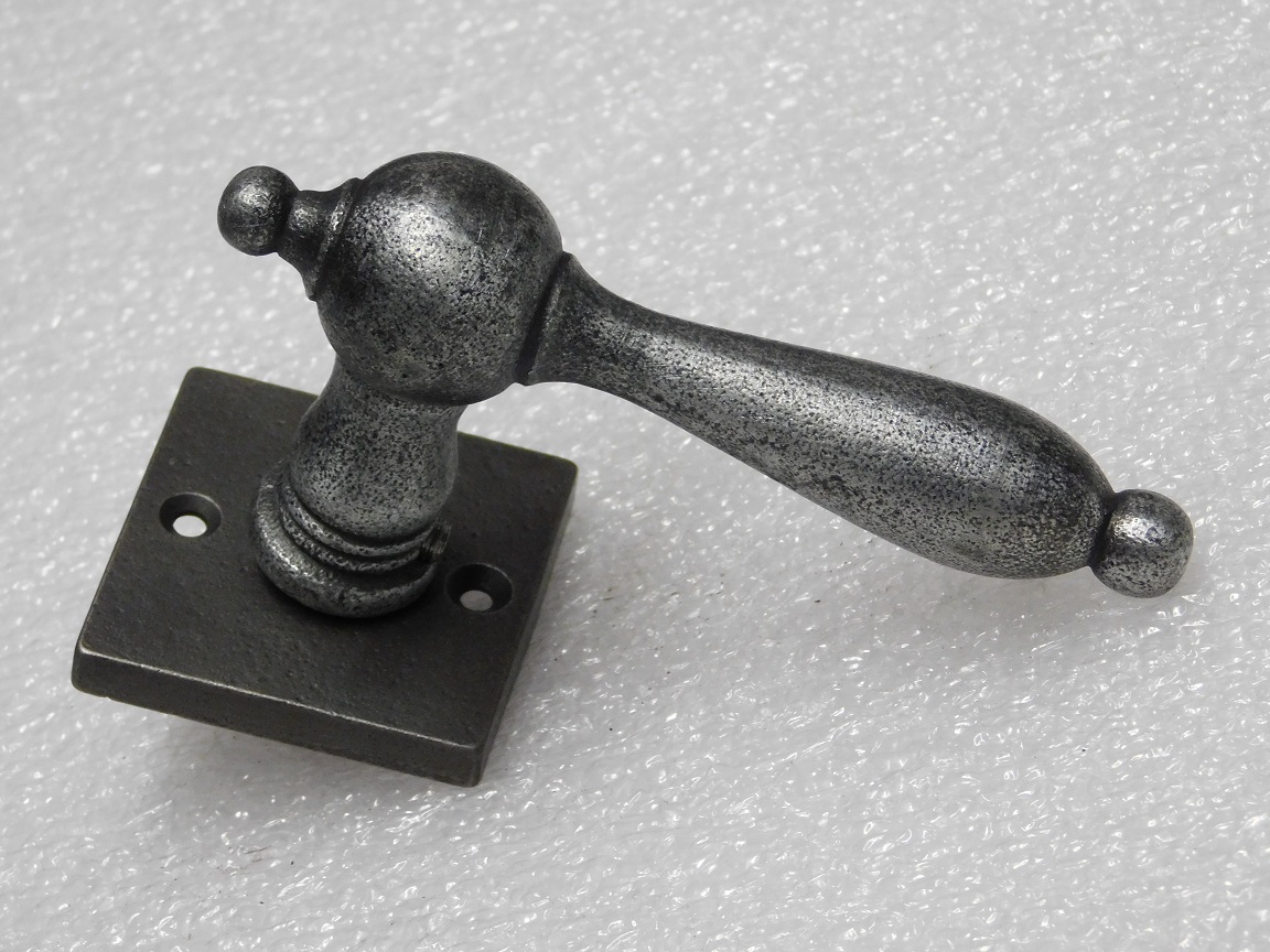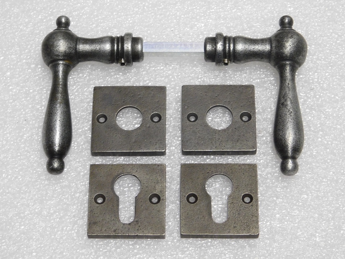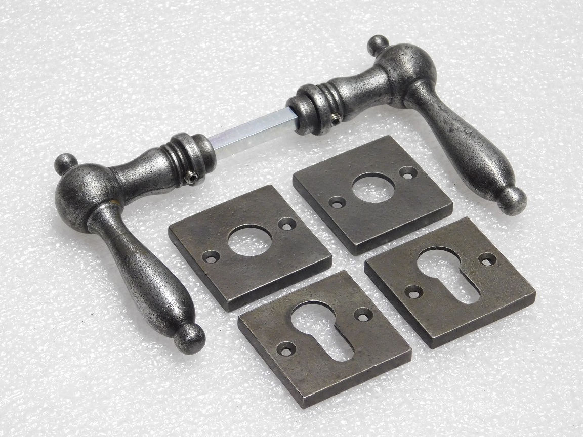 Set Türgriffe Cambridge + quadratische Griff- und Schlossrosetten – verzinktes Gusseisen