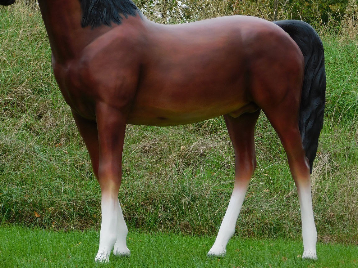 An den Hufen befinden sich Befestigungslöcher, damit die Skulptur fest und sicher im Boden verankert werden kann.