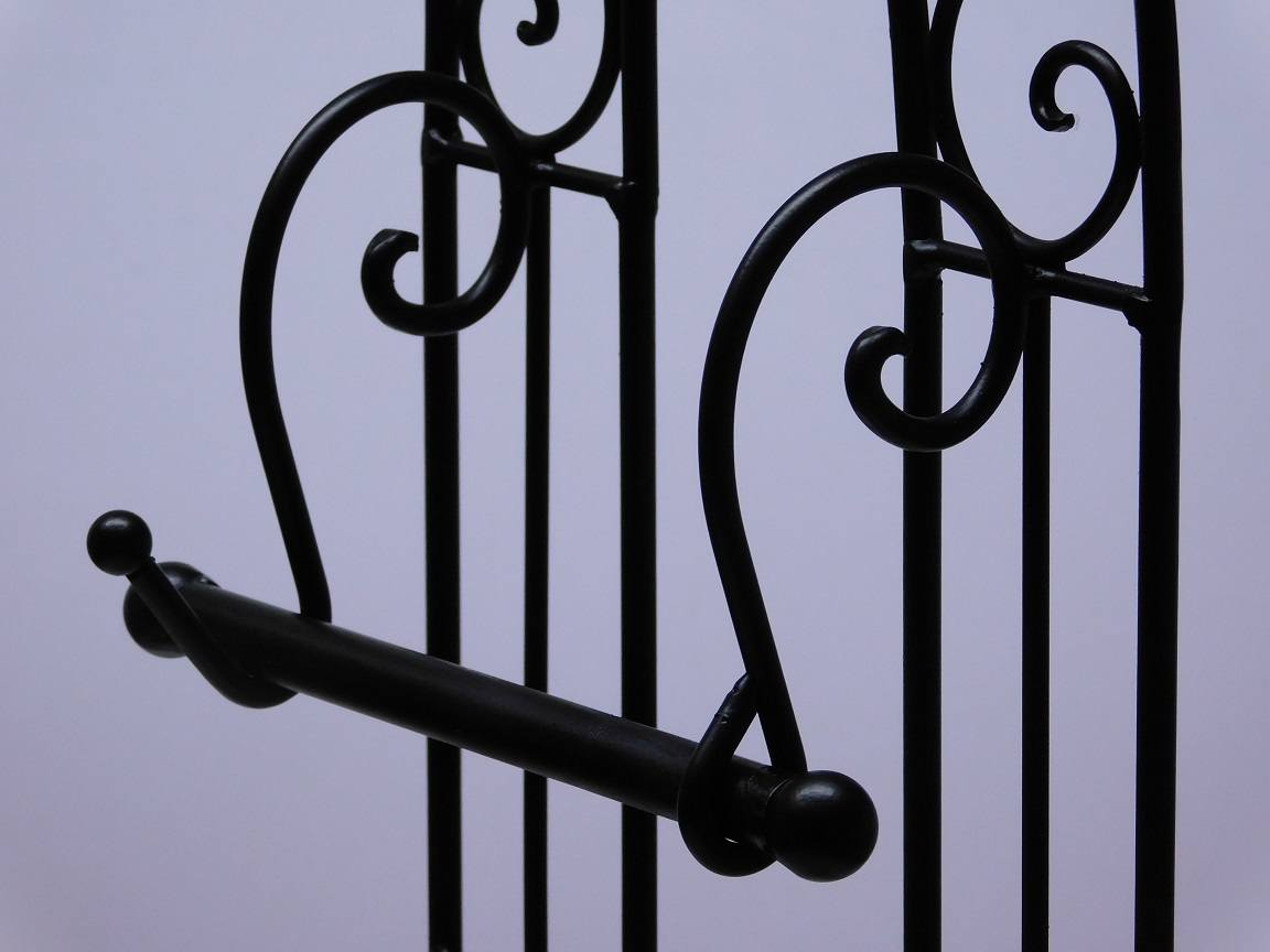 Deze staande toiletrolhouder van smeedijzer combineert een luxe uitstraling met maximale functionaliteit.