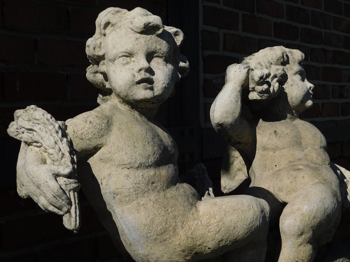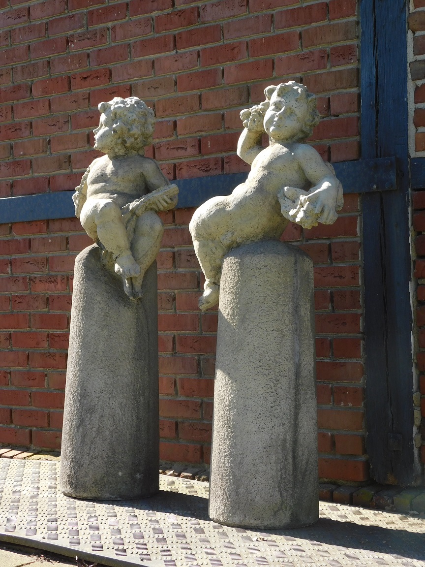 Lieferumfang: 1 Set Vintage-Putten (2 Stück) auf Sockel, stein