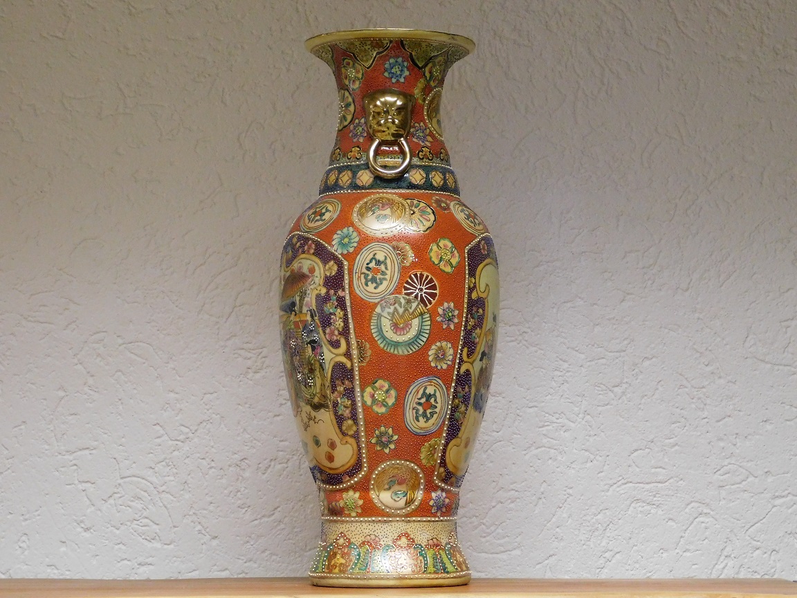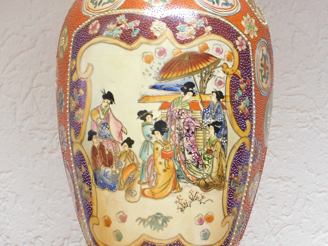 Vintage-Vase – 62 cm – japanischer Satsuma-Stil – handbemaltes Porzellan