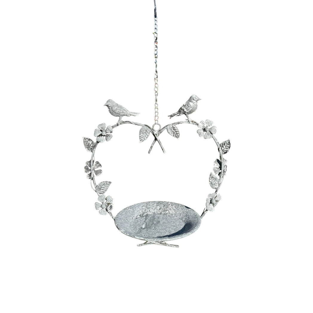 Lieferumfang: 1x Vogelfutterstelle, herzförmig mit Kette, Metall