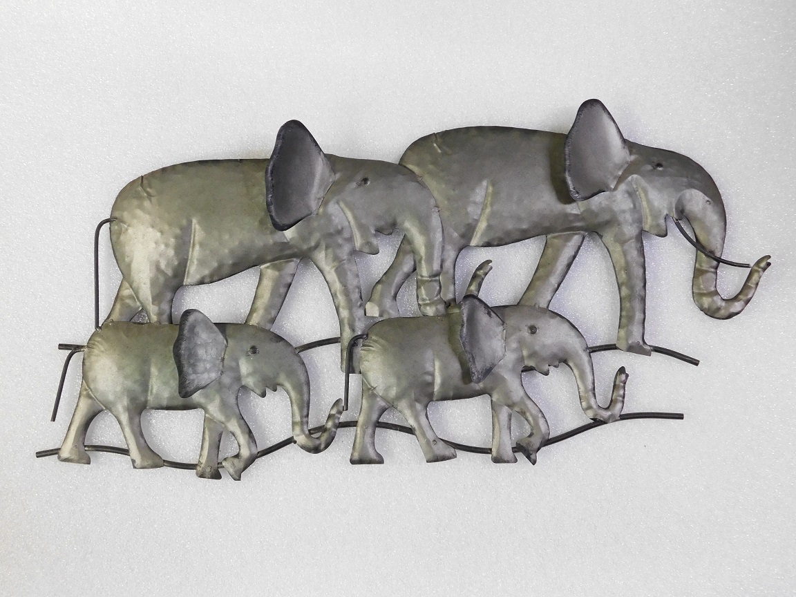 Dieses stilvolle Wandornament besteht aus vier Elefanten – zwei großen und zwei kleinen –, die zusammen eine liebevolle Familie bilden.