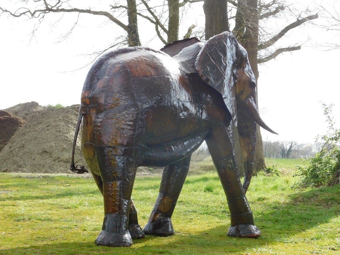Lieferumfang: 1x XXL-Elefant aus Metall, handgefertigt