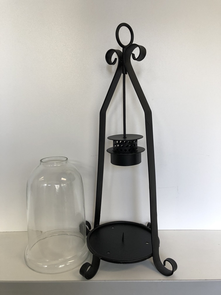 Kerzenleuchter, Windlicht, Metall-Glas, schwarz, schönes Schmiedeeisen.