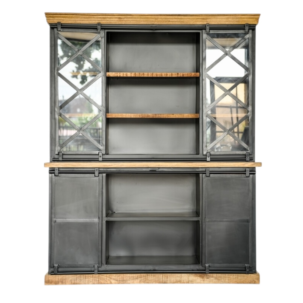 Lieferumfang: 1 x Schrank in 2 Teilen, Hartholz kolonial mit Metallelementen.