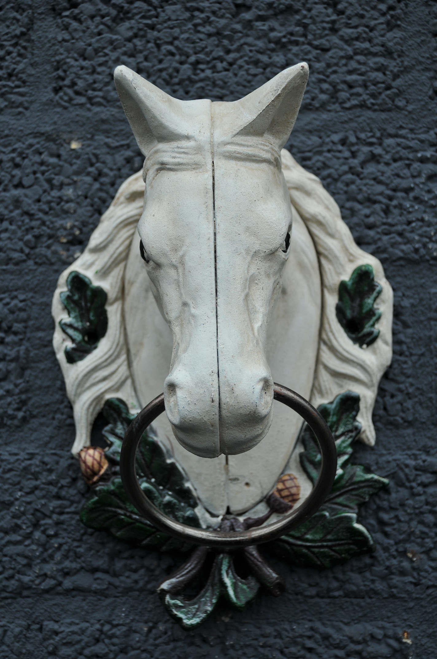 Pferdekopf mit Ring, Gusseisen weiß/rost