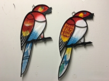 Mooie set grote papagaaien vol in kleur en lich van gewicht, makkelijk overal op te hangen.