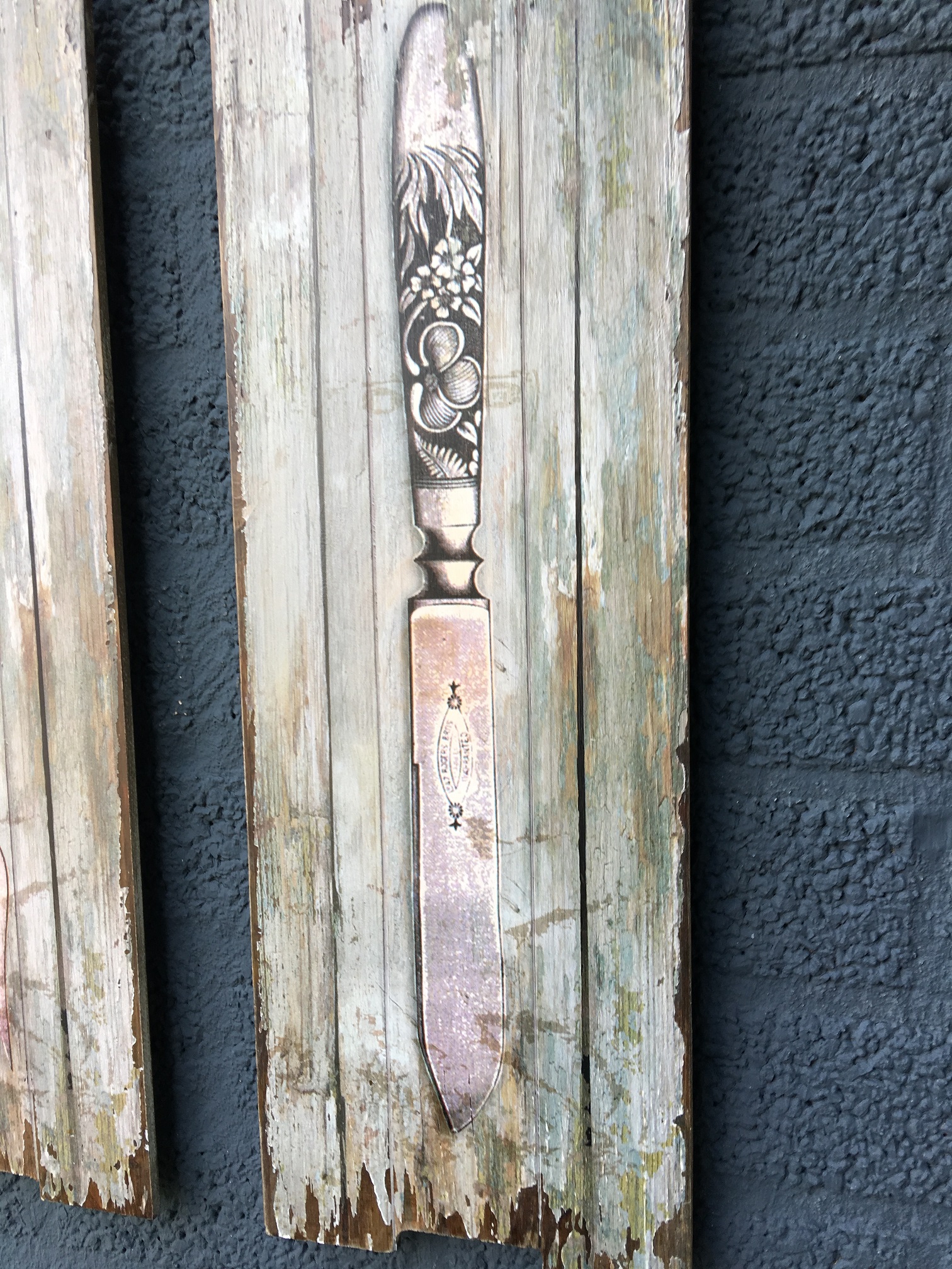Leveringsomvang: 3 design borden met bestek afbeeldingen op hout.