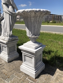 Lieferumfang: 1 x Blumenkasten Tulpe massiv Stein weiß-grau auf Sockel.