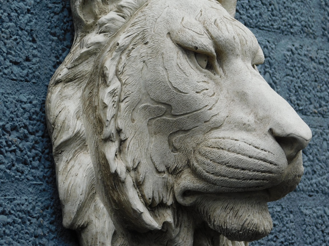 Lieferumfang: 1 x Tigerlöwenkopf, polystein, grau.