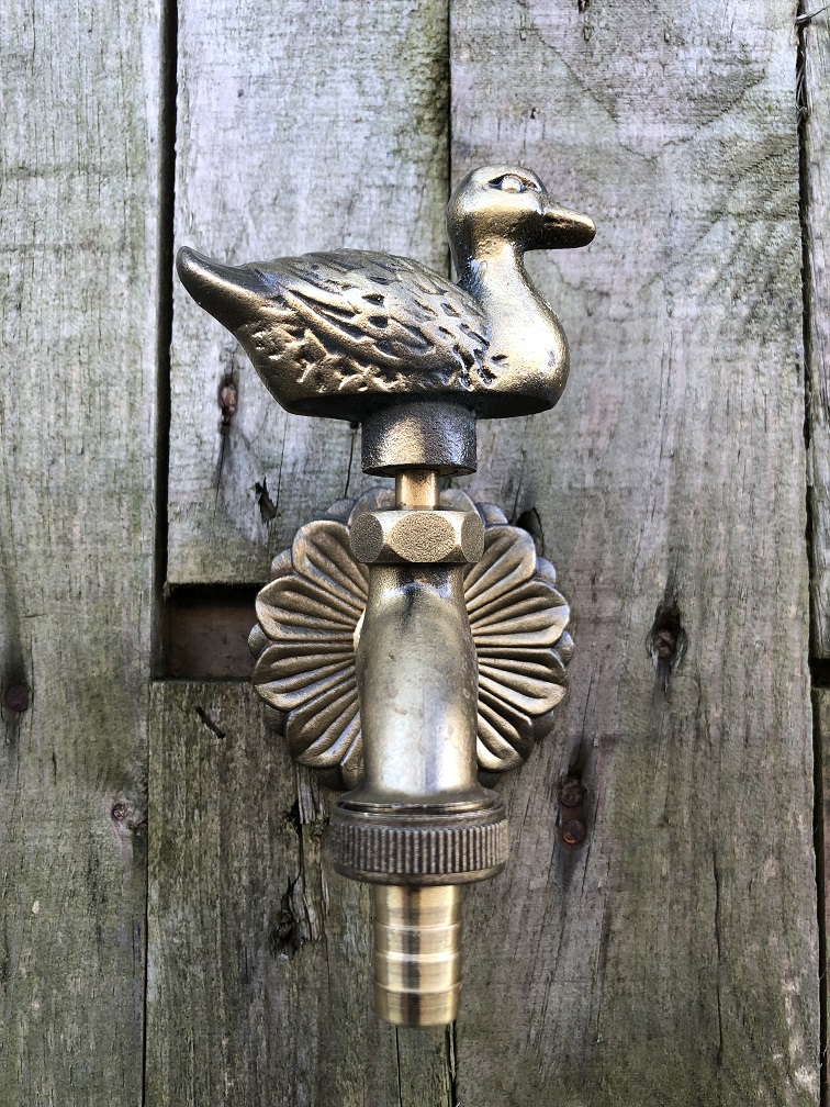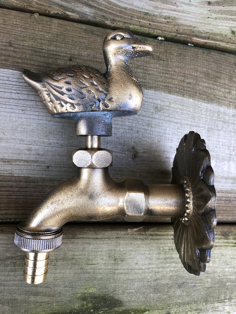 Voor de muur fontein of de kraan in het huis: Kraan met dierbeeldje - eend als waterkraan.