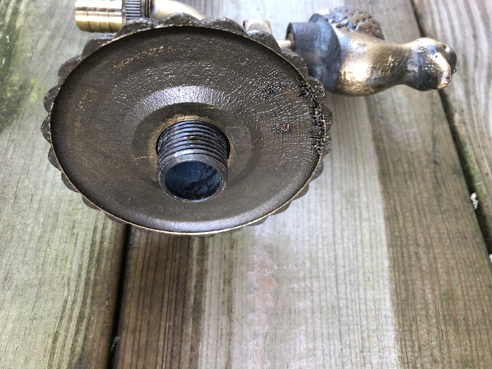 Als ongebruikelijk eye-catcher aan de muur of op het terras: Deze mooie en zeer smaakvol ingerichte, in landelijke stijl vormgegeven kraan met aansluitmogelijkheid voor een tuinslang !