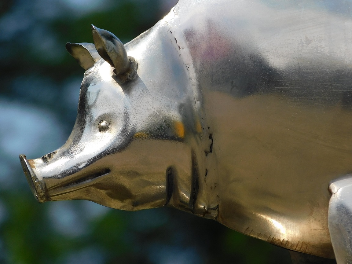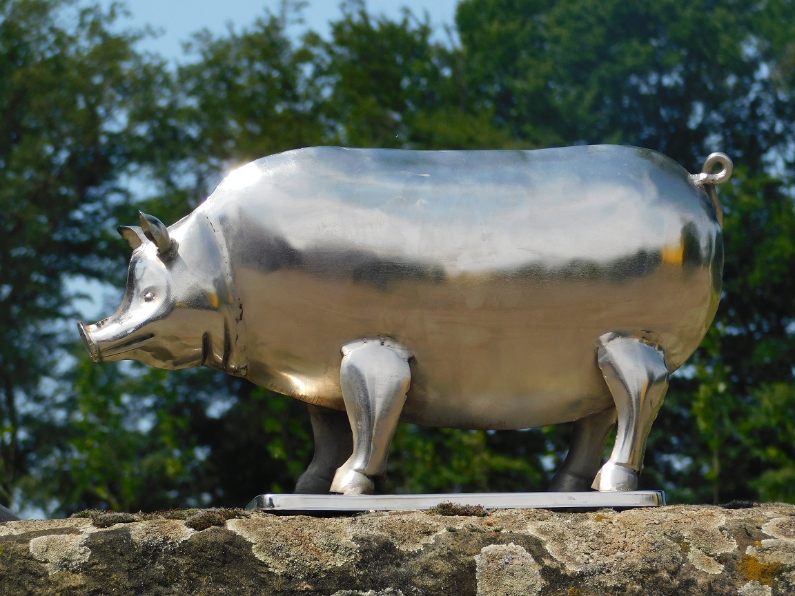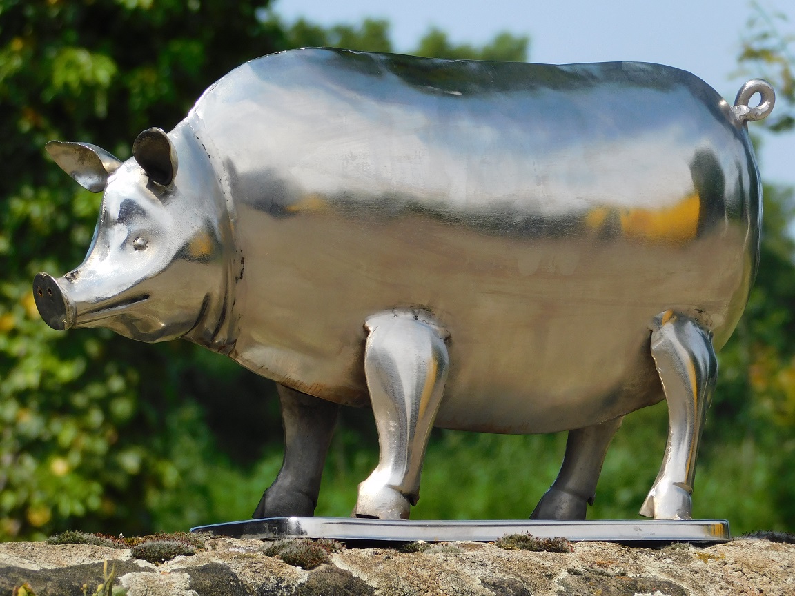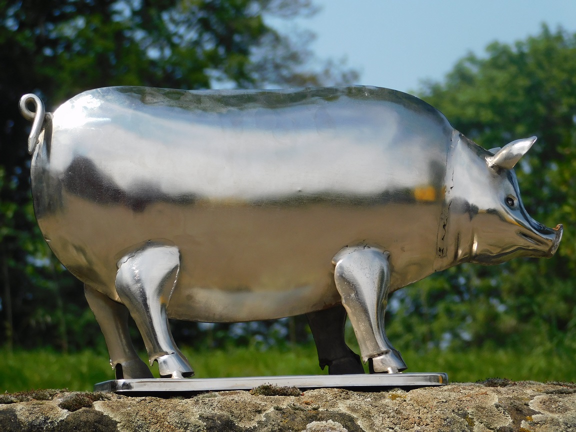 De gedetailleerde vormgeving en het gebruik van chroomkleur geven het varken een eigentijds en uniek karakter.
