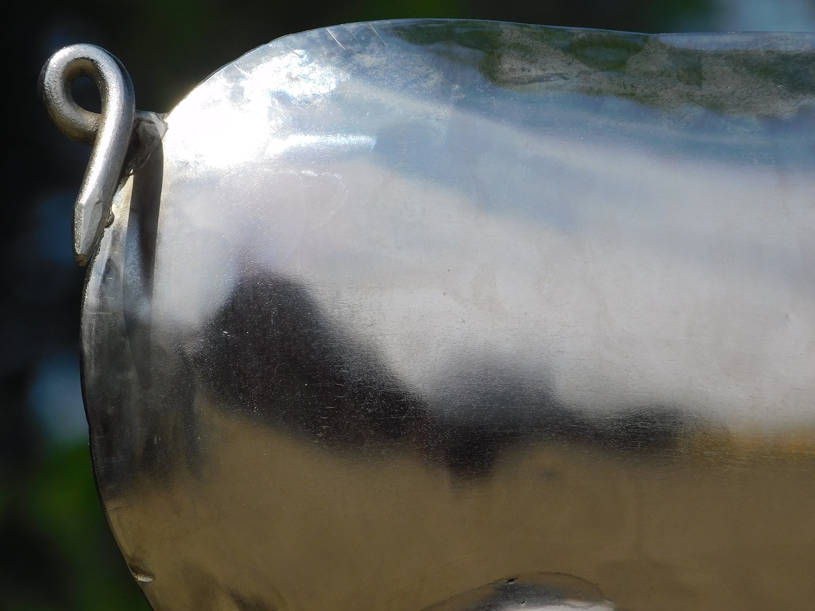 Met een moderne uitstraling en een chroomkleurige afwerking is dit sculptuur een opvallend decoratief stuk dat direct de aandacht trekt.