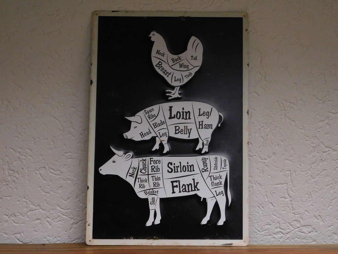 Wandbord Kip, Varken en Koe - Metaal - Butchers 'Guide